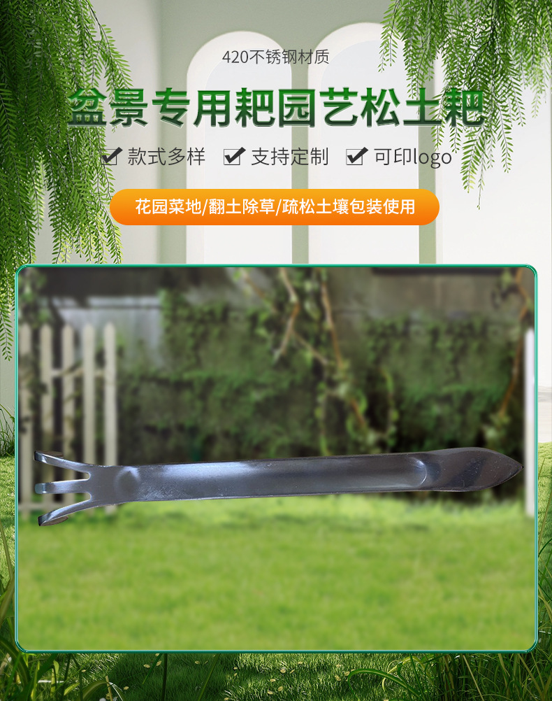 CPAI盆景小耙子家用花盆松土神器压土一体不锈钢耙子盆景专用工具