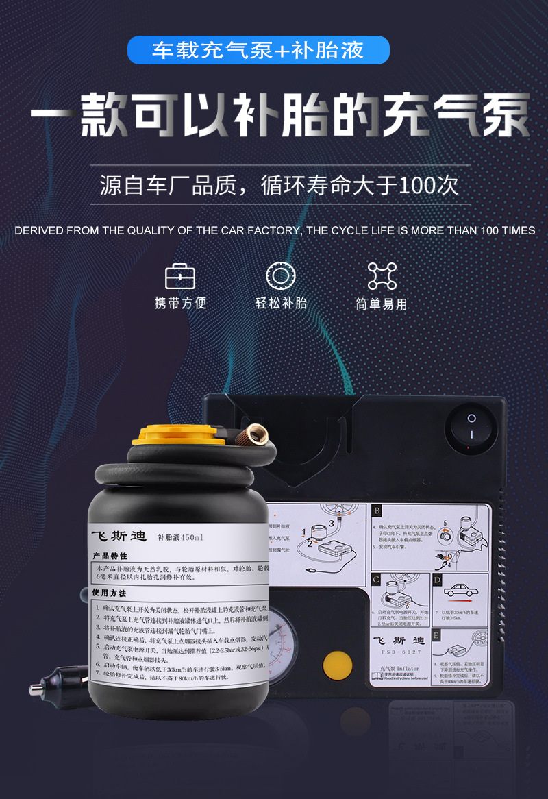 汽车厂用车载充气泵便携式车用小轿车轮胎汽车自动补胎液工具套件
