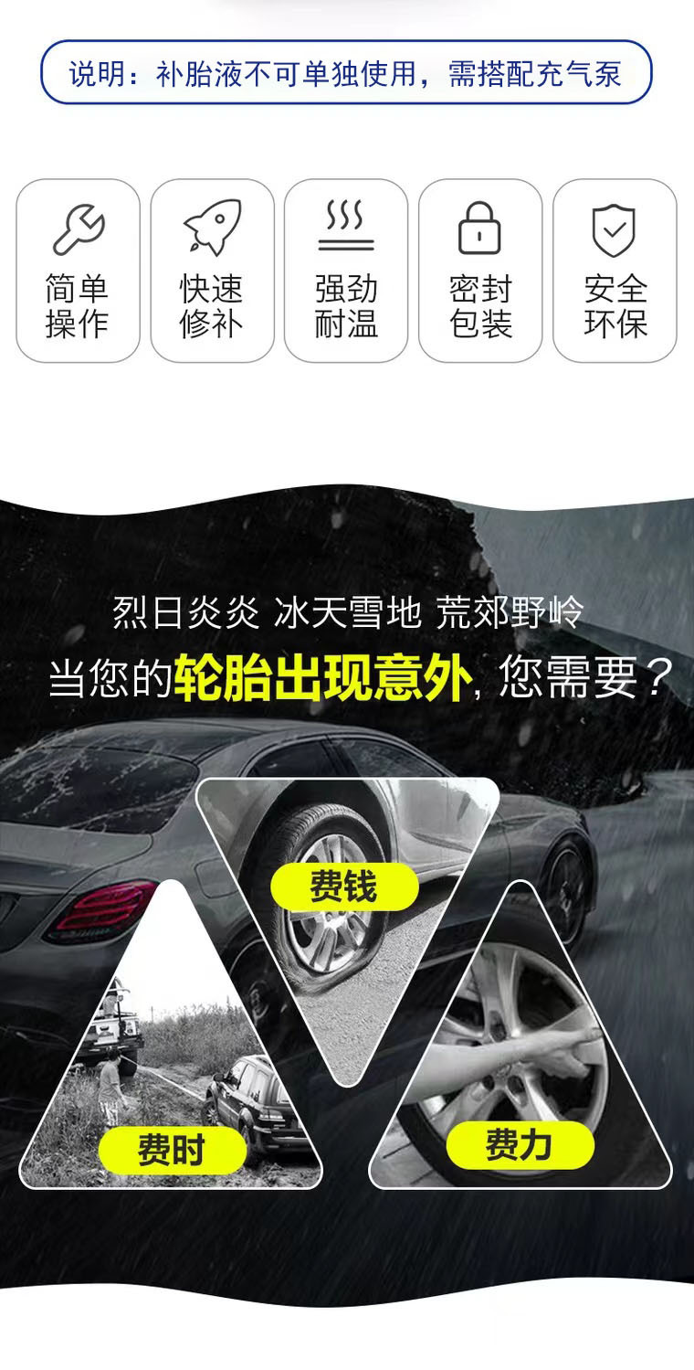 自動車真空タイヤ補胎液新エネルギー電動燃料車汎用型エアポンプ補胎液ツールセット