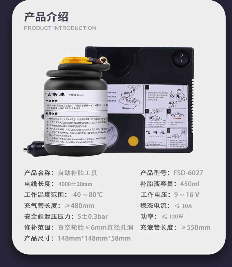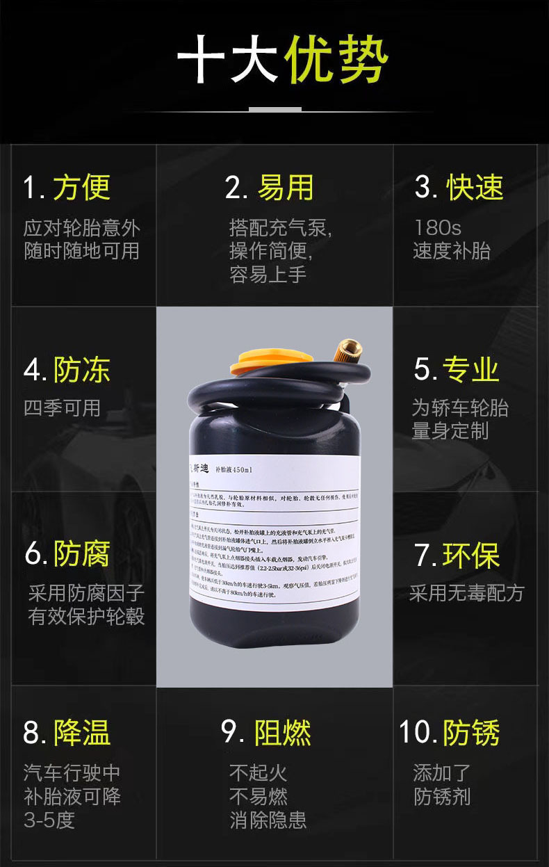 飛斯迪タイヤ自動空気充填タイヤ液体真空タイヤ新エネルギー電気燃料車快速補修接着剤
