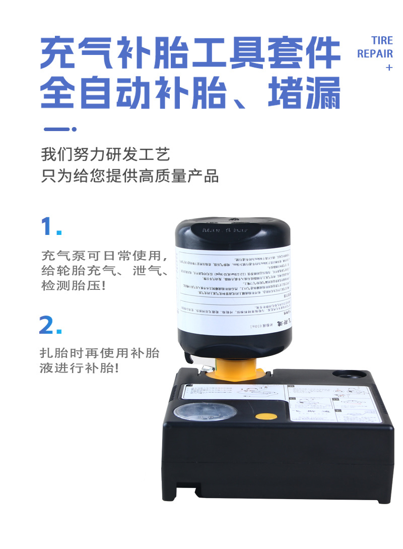 真空タイヤ修理液ツールセットは新エネルギー電車燃料車のタイヤインフレータブルポンプ修理液接着剤に適合しています。