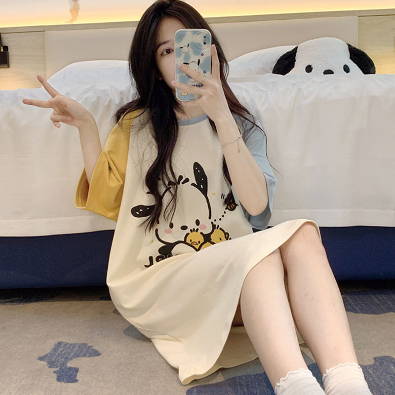 M-5XLの純綿の寝スカートの女性の夏の半袖のパジャマは大きいサイズの韓国版の中で長いタイプの妊婦の月子服の部屋の服をプラスします。