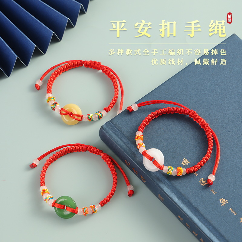 手工编织平安扣红绳手链端午节手绳民族风本命年平安扣手链