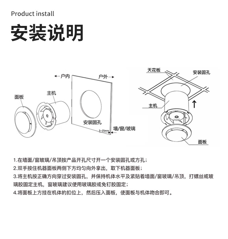 窓型排気ファン、ガラス製排気ファン