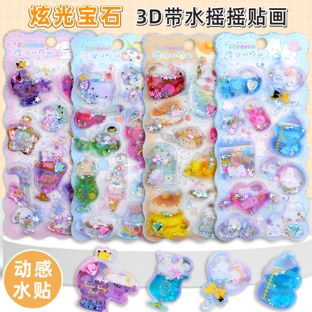 子供の女の子3d立体帯水揺れシール女の子のおもちゃ赤ちゃん注水水晶流砂奨励貼り絵