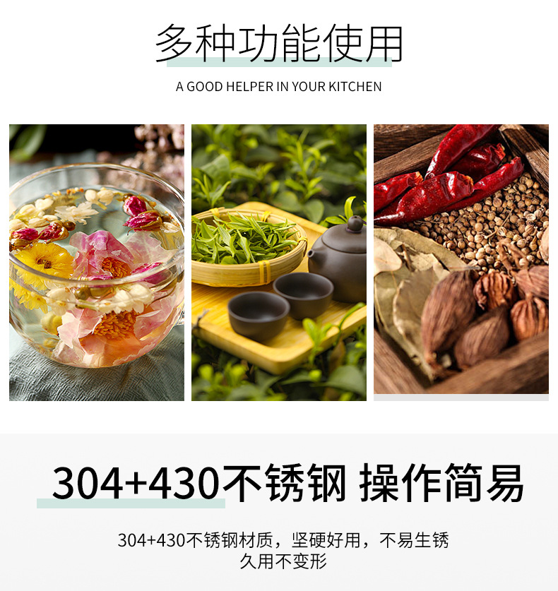 ステンレス304シンプル茶球散布粉末フィルター神器家庭用ハンドル茶葉円形茶葉調味料フィルター