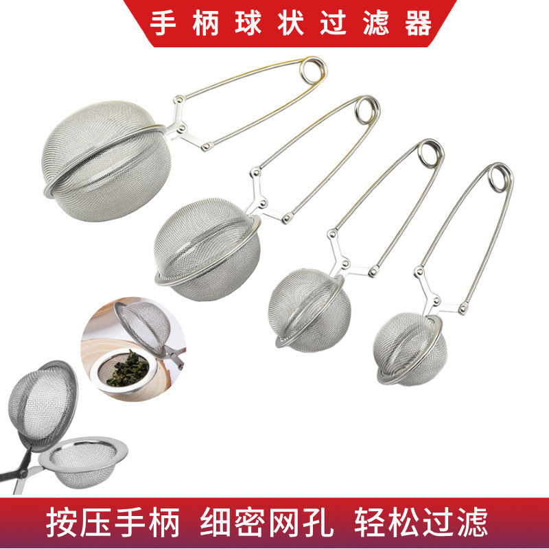 304ステンレスネット茶球家庭用ハンドル茶円形フィルタ茶の調味料の濾過かすは簡単に茶球を入れます。