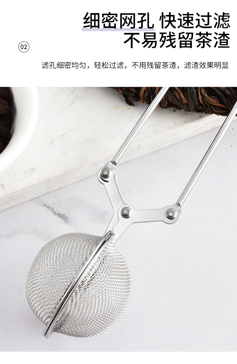 304不锈钢网茶球撒粉滤渣神器家用按压式手柄茶叶圆形过滤器茶叶