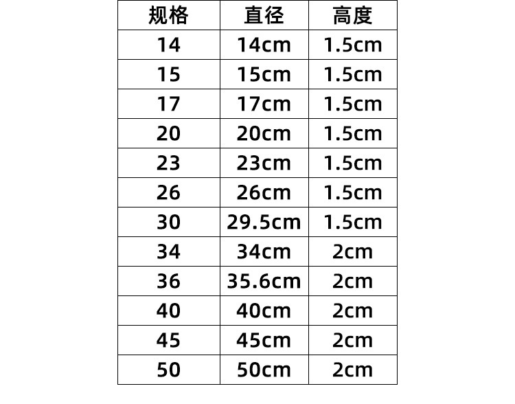 仕様 14cm,15cm,17cm,20cm,23cm,26cm,30cm,34cm,36cm,40cm,45cm,50cm