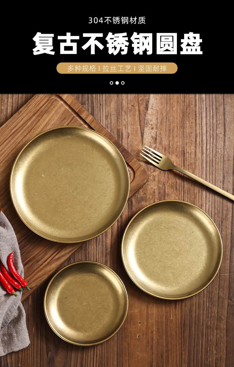 レトロゴールド中華デザートプレートホームダイニングプレートセットレトロクリエイティブプレートフルーツプレート中華菓子サンプルプレート