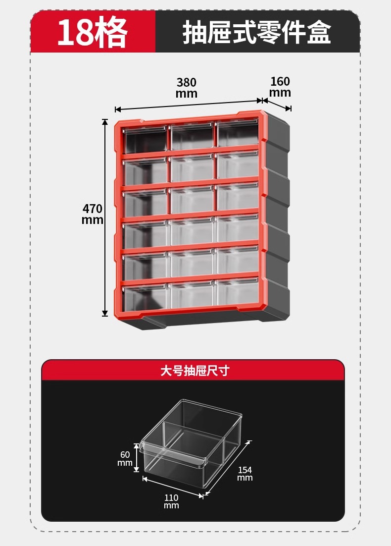日本工具部品分類収納ボックス ハードウェアツールボックス 引き出し型角型分割部品ボックス