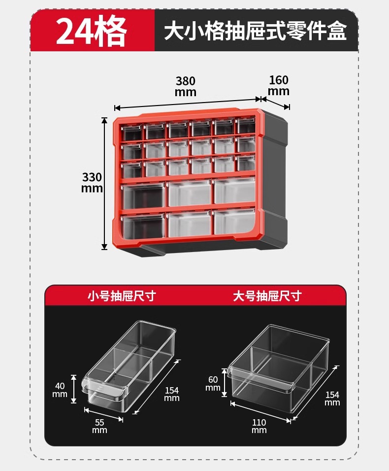 44格引き出し式部品ボックスツール部品収納ボックス移動インサート手形収納グリッド部品キャビネット