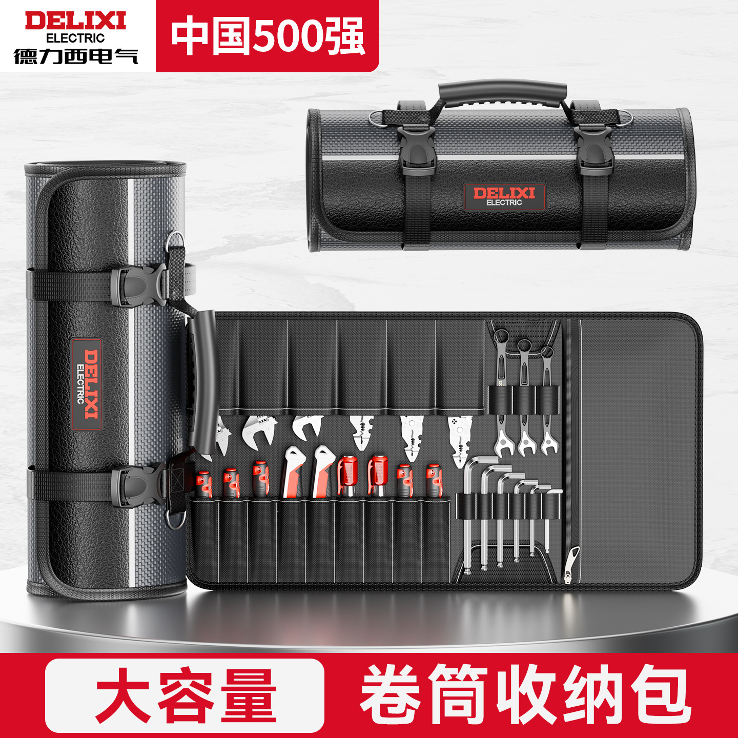 德力西电气工具袋电工卷筒工具包多功能小型扳手钳子插袋耐磨卷包