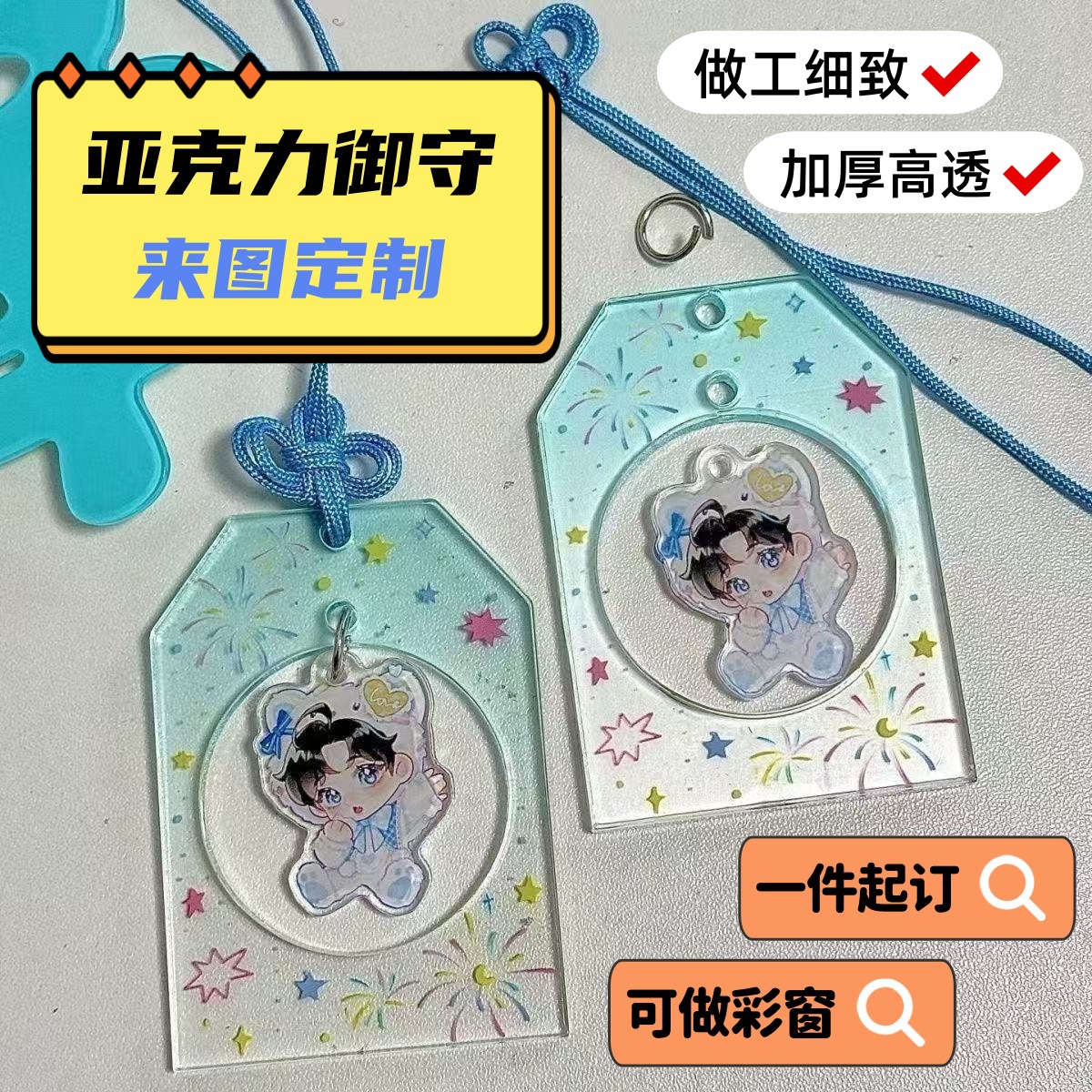 亚克力御守镂空挂件定制细闪渐变彩窗明星周边钥匙扣定制透明礼物