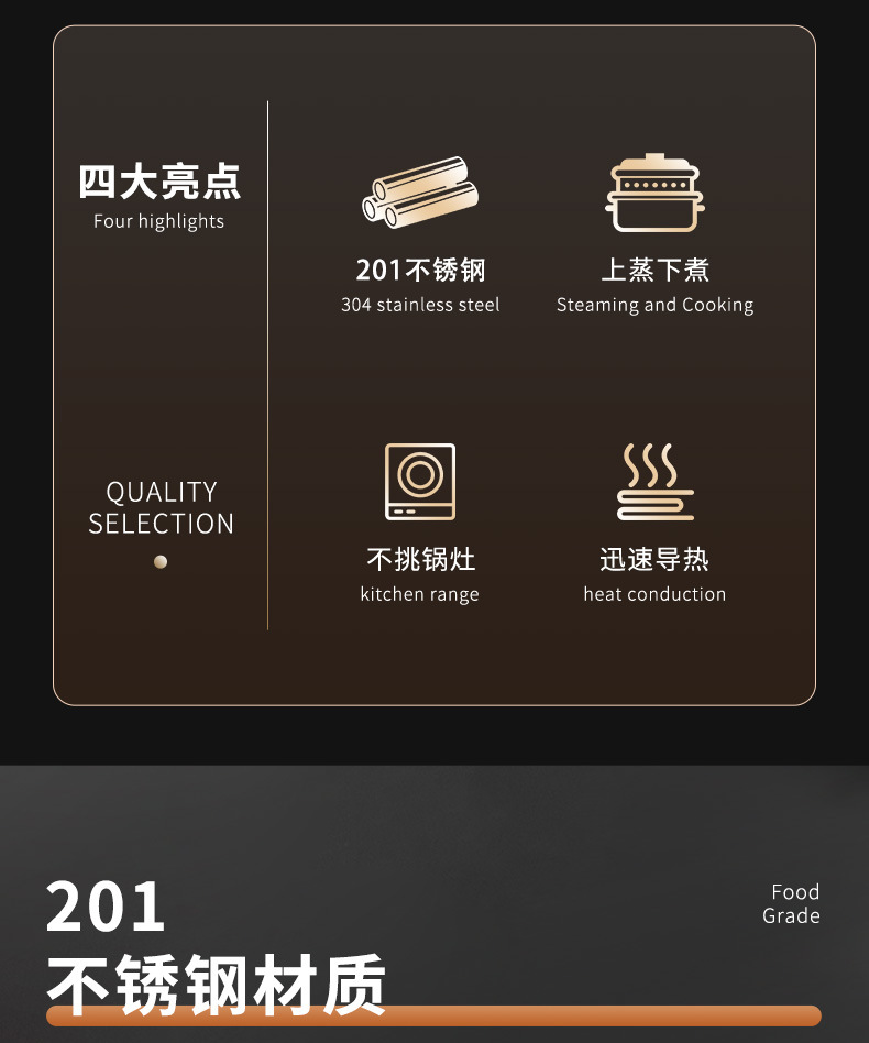 現物卸売り304ステンレス蒸し器家庭用蒸し器蒸し器201ステンレス蒸し器蒸し器高蒸し器