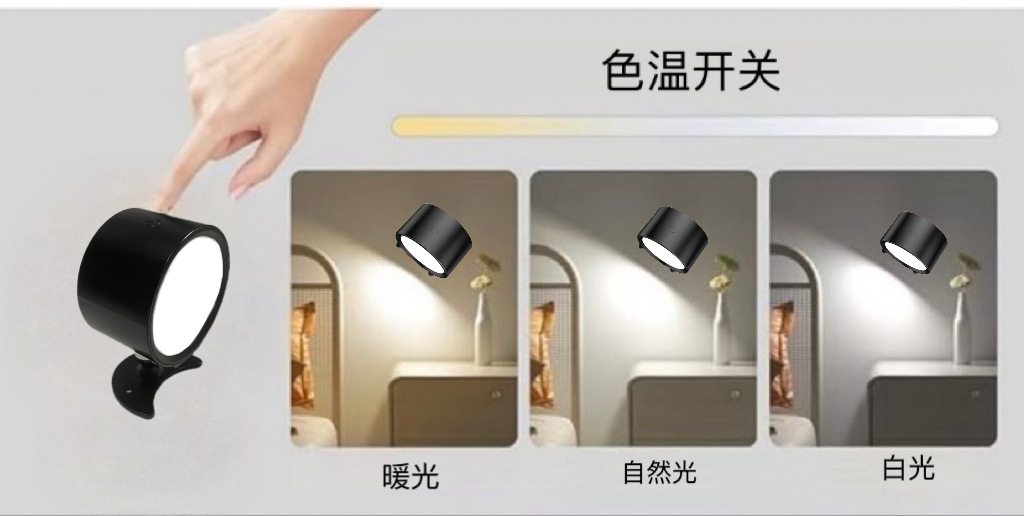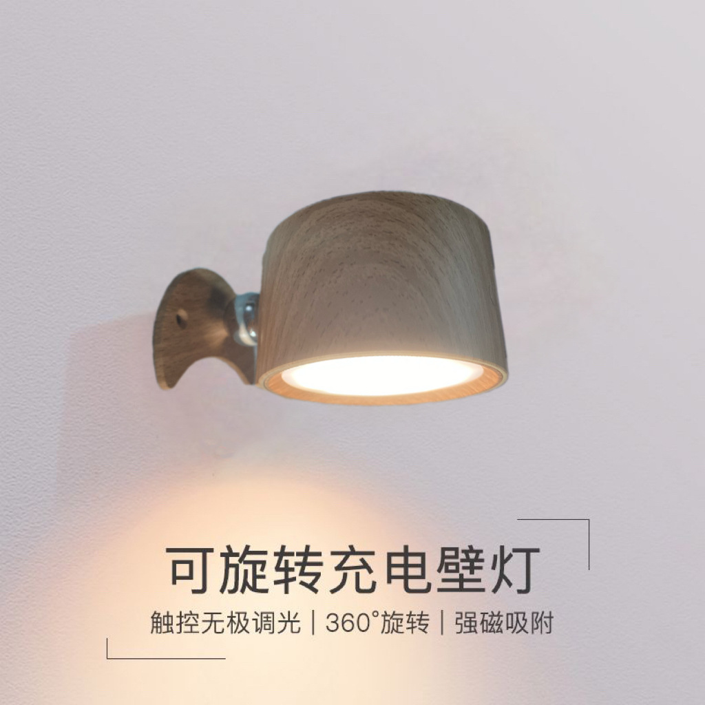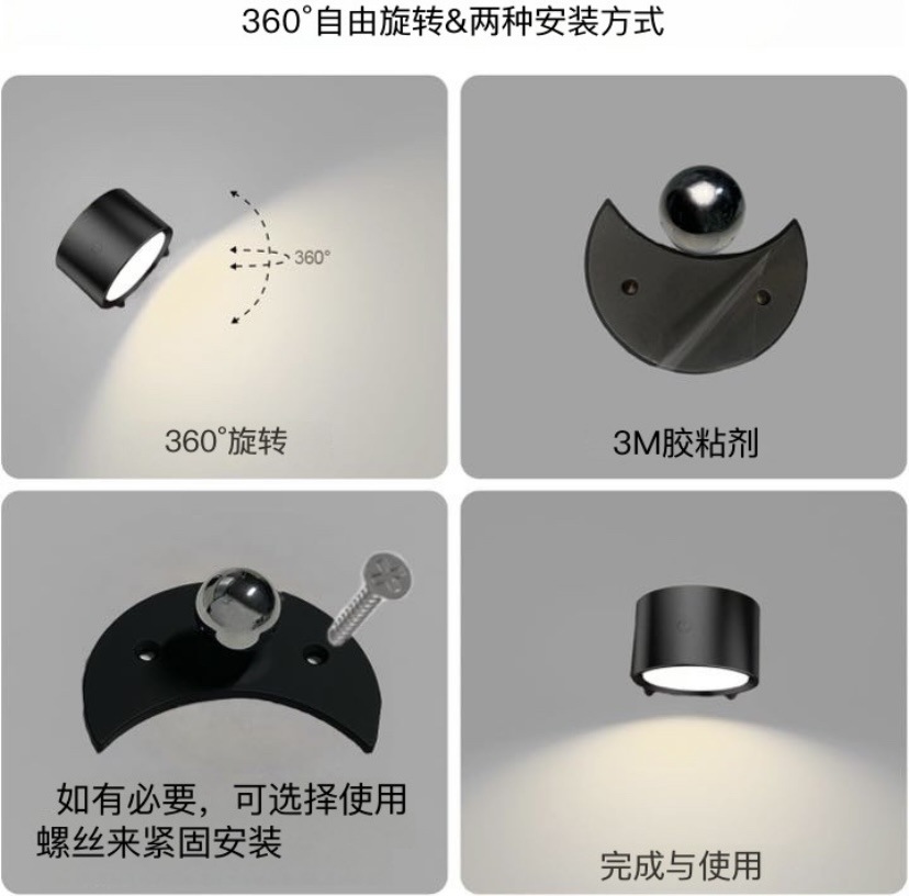 免线充电壁灯无线磁吸射灯免打孔安装卧室床头阅读灯充电氛围灯