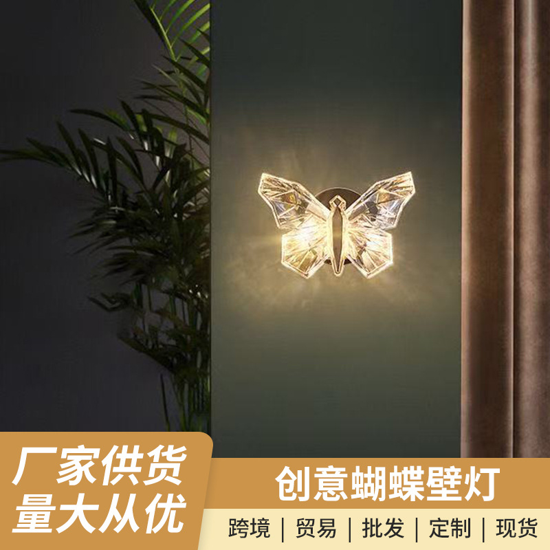 蝴蝶壁灯北欧轻奢卧室床头灯温馨浪漫现代设计师感装饰背景过道灯