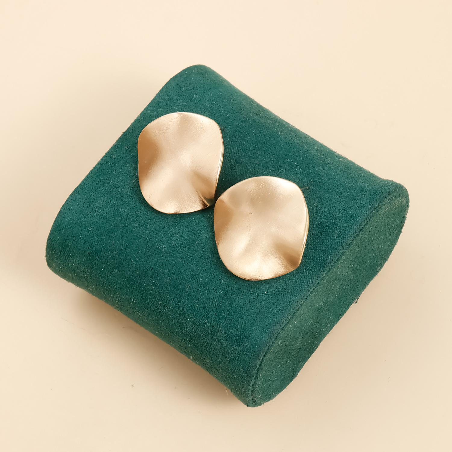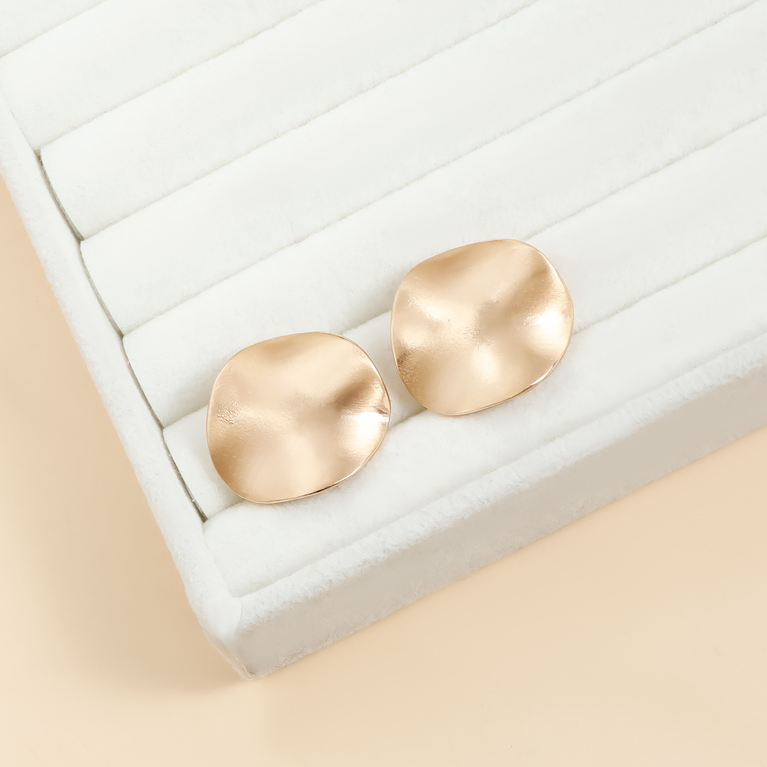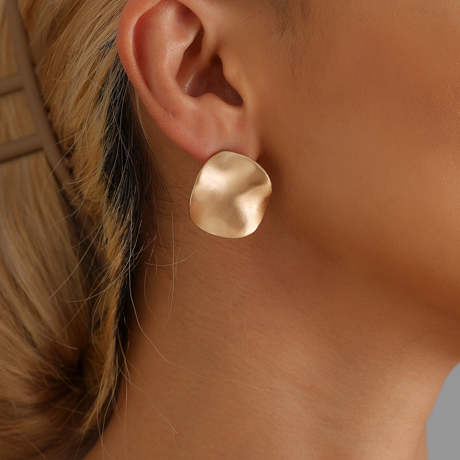 欧美冷淡风拉丝耳环圆片曲面浅金色耳钉夸张个性时尚耳环耳饰新款