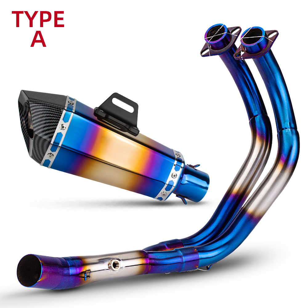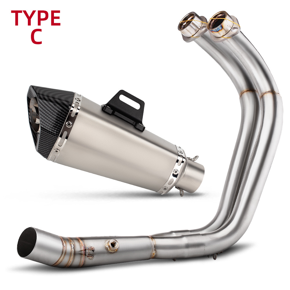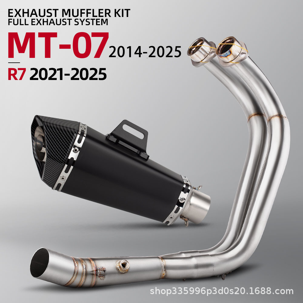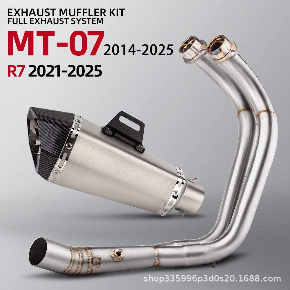 オートバイ MT07 フルセクション排気管修正ステンレス鋼フロントセクション小さなコーン六角テールセクションセット非破壊取り付け