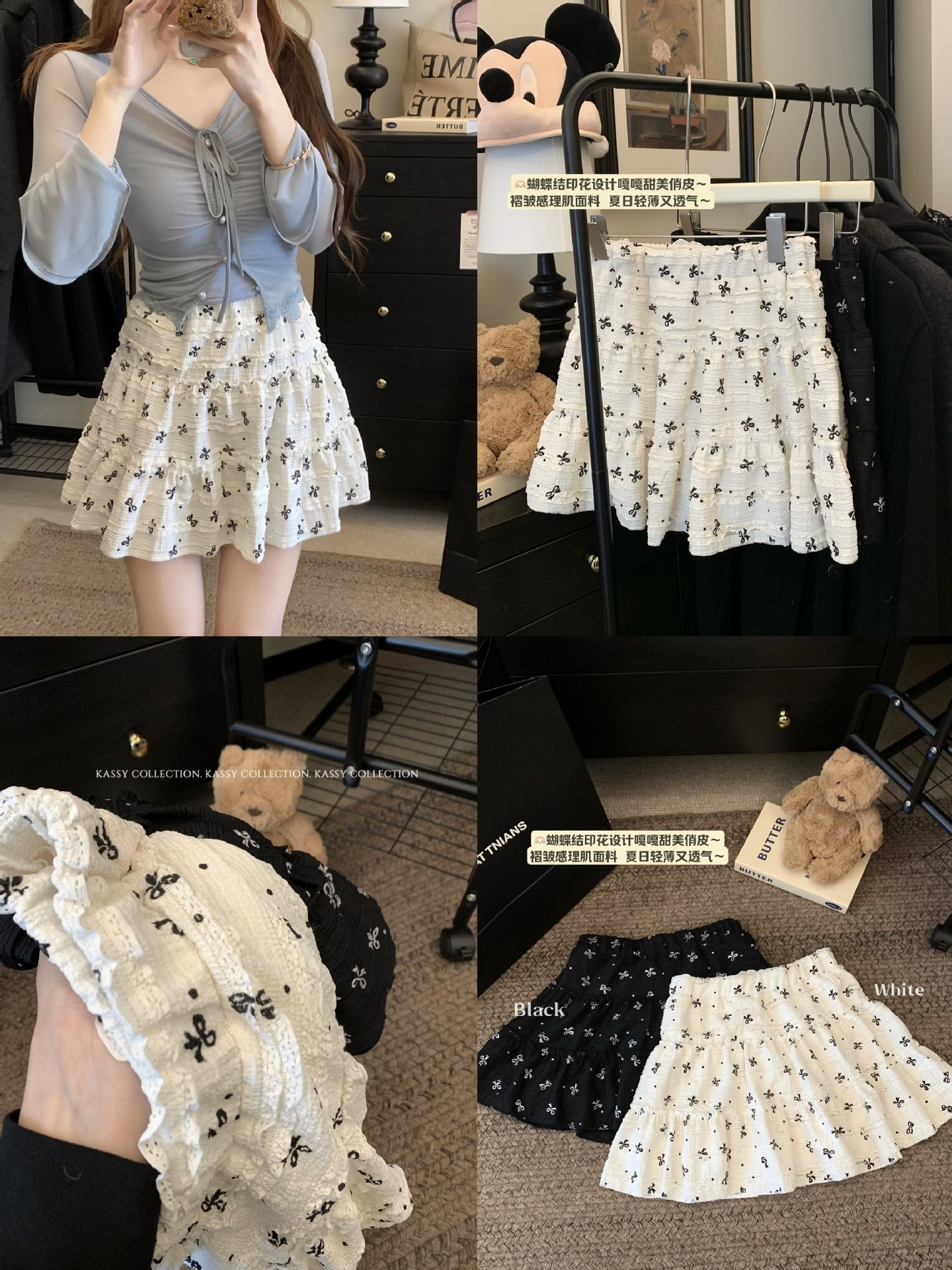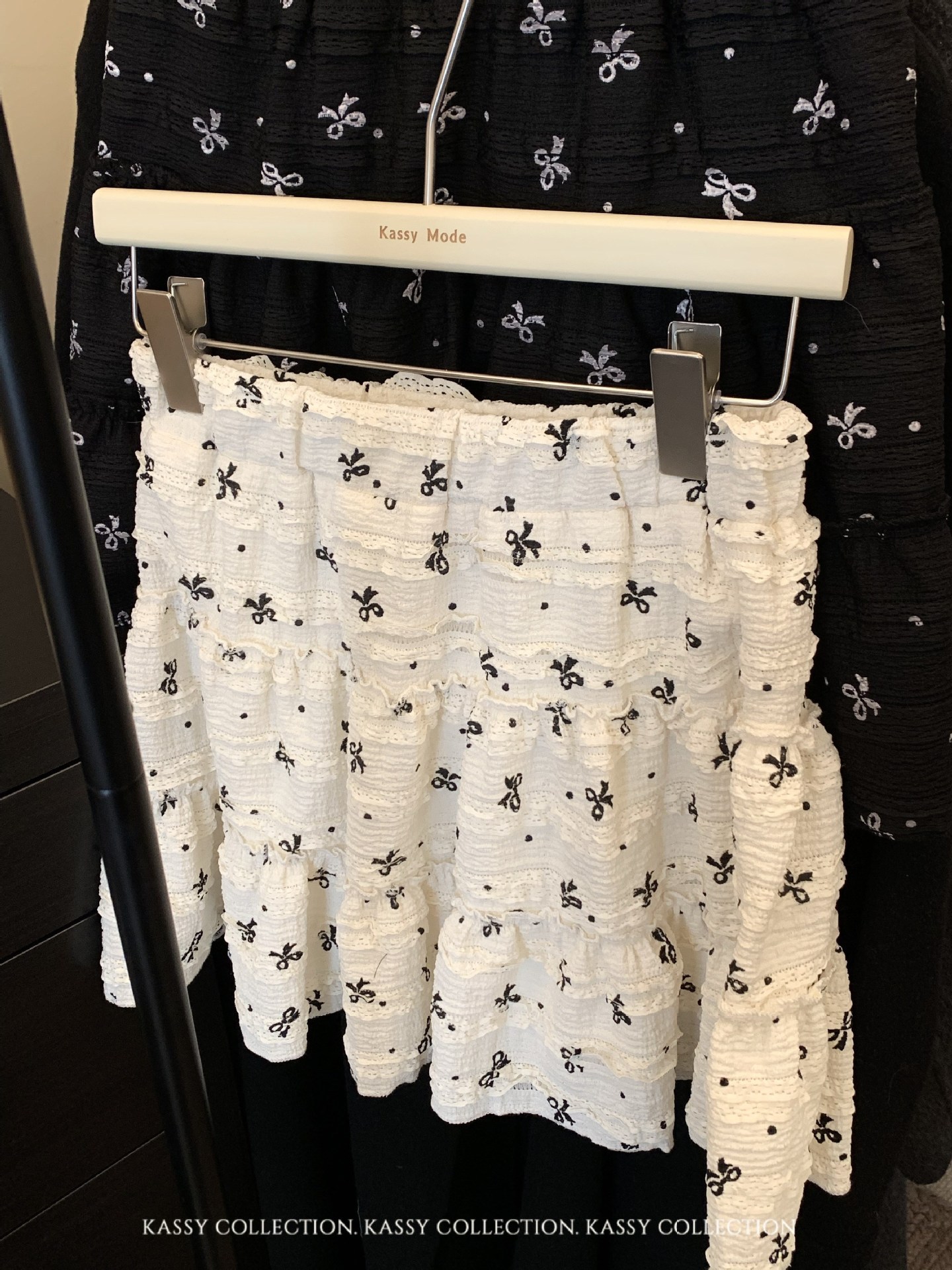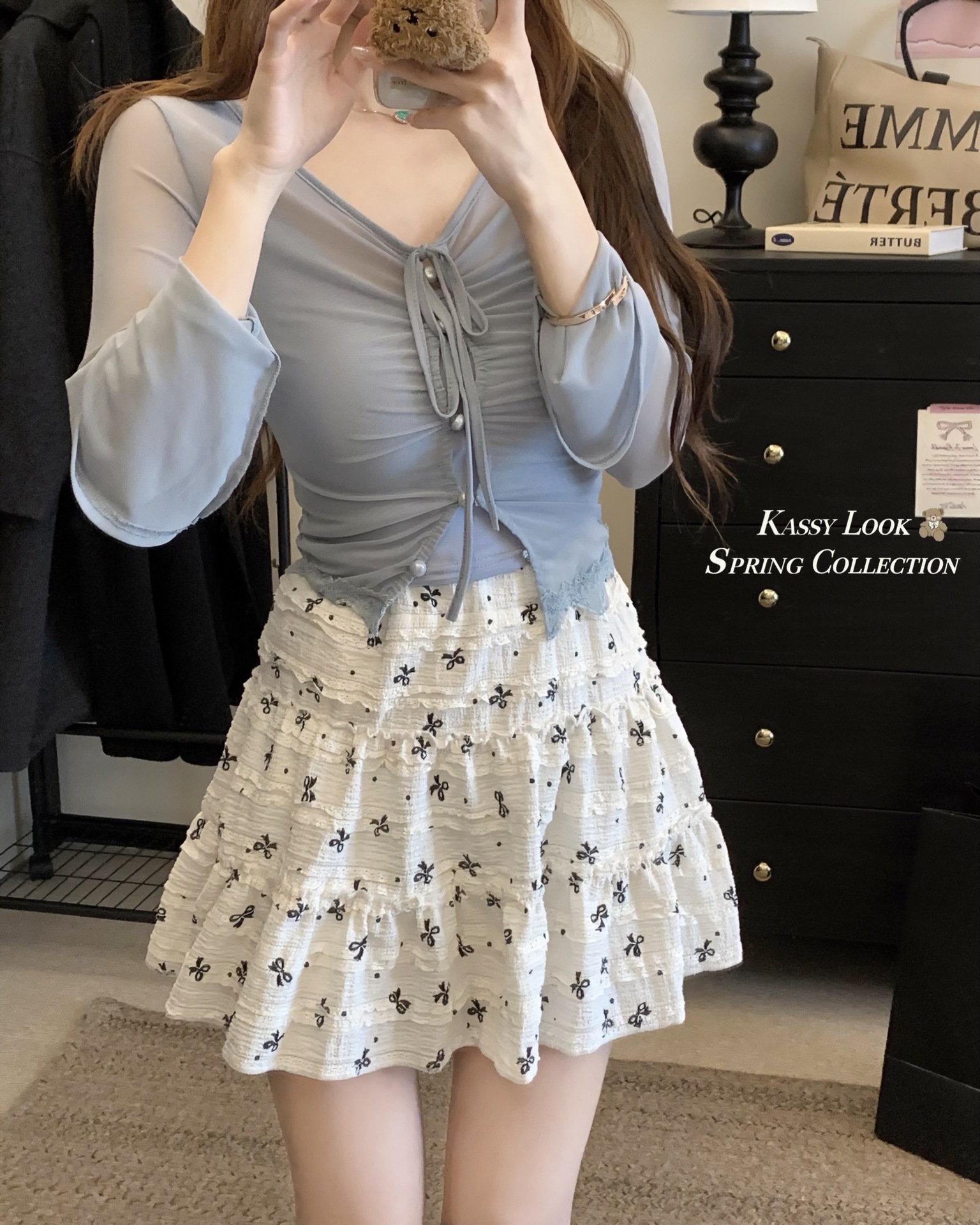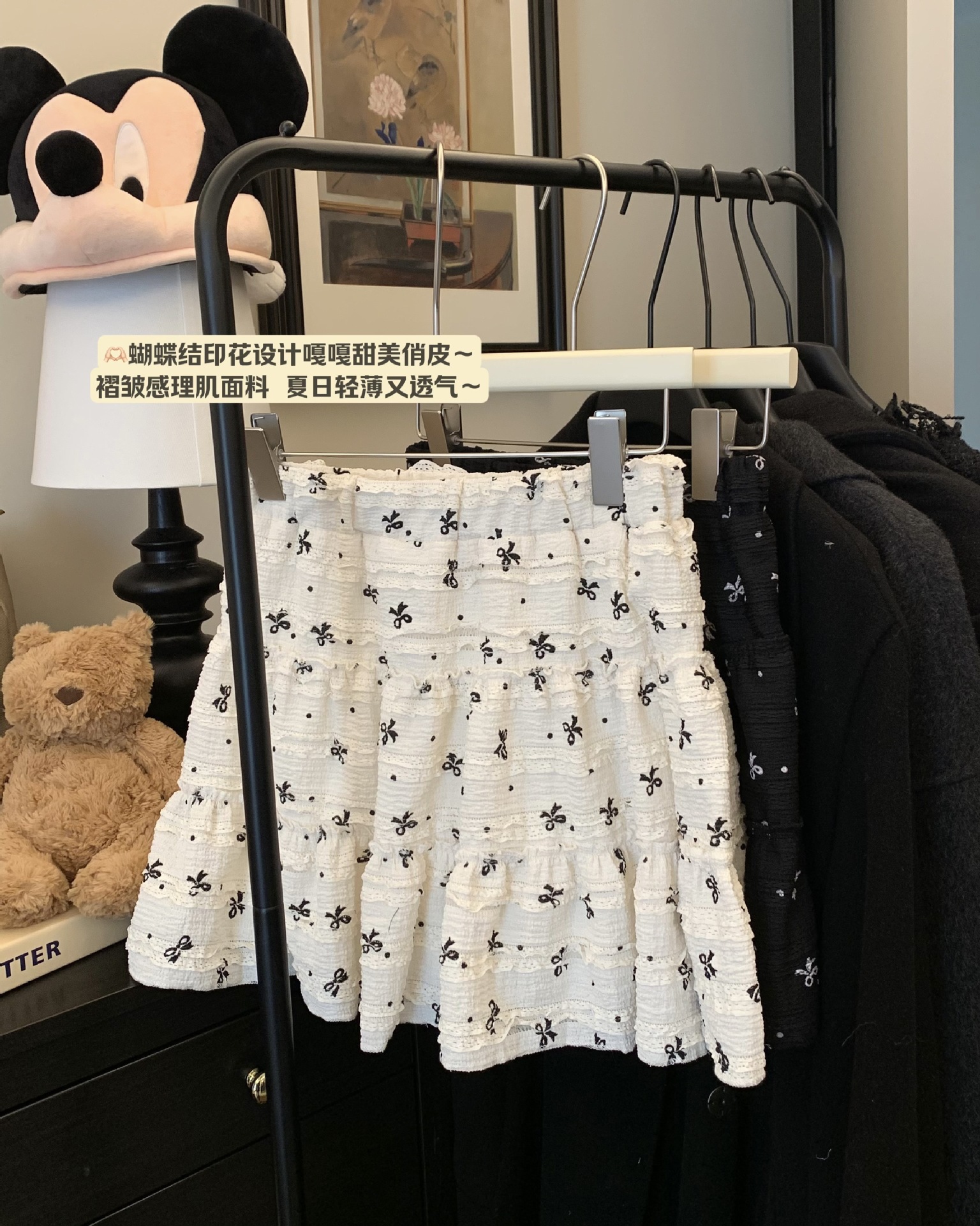 韓系開叉蝶結びのレースの中に半身のスカートを掛けます。女性2025夏の新型高腰波点a字のスカートです。