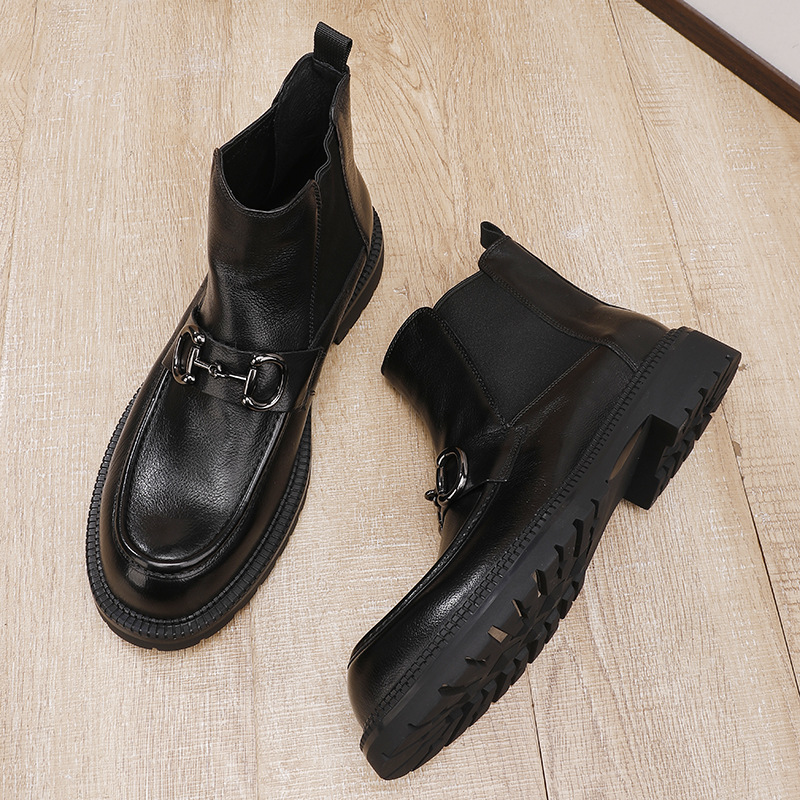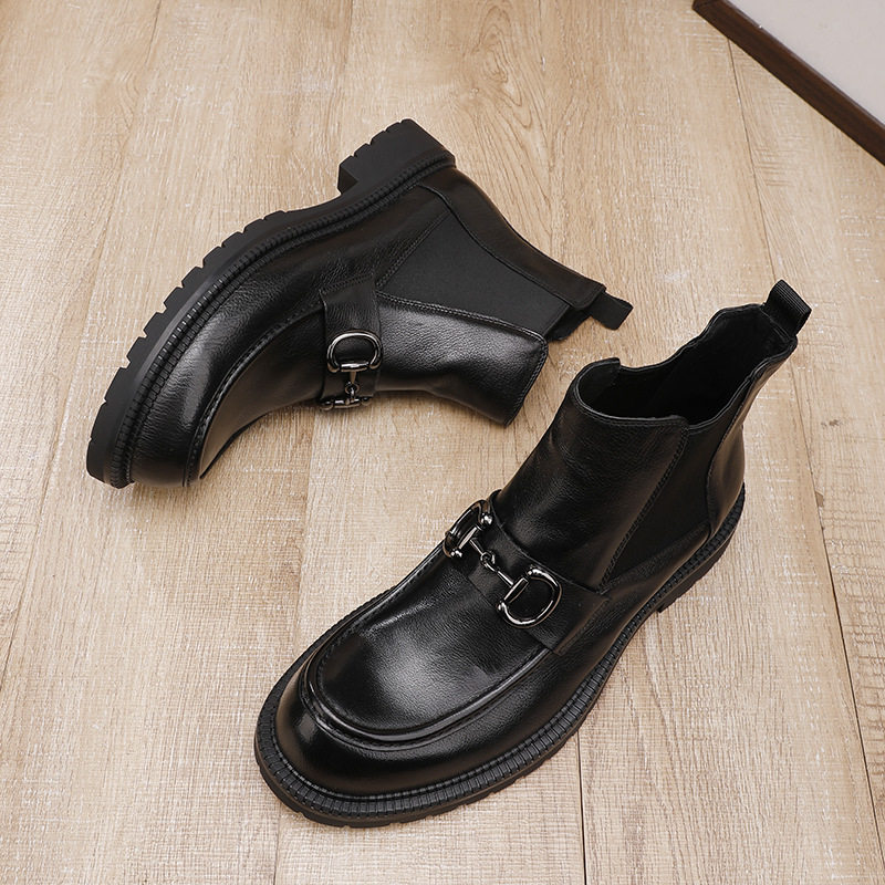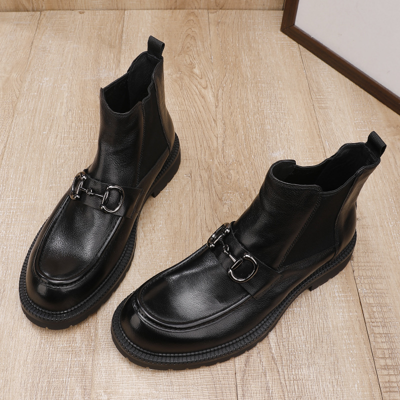 チェルシー メンズ ブーツ ラウンドトゥ 快適 ショートブーツ スリーブ クラシック ハイトップ 革靴 本革 牛革 メンズ ブーツ プラス ベルベット ウォームブーツ