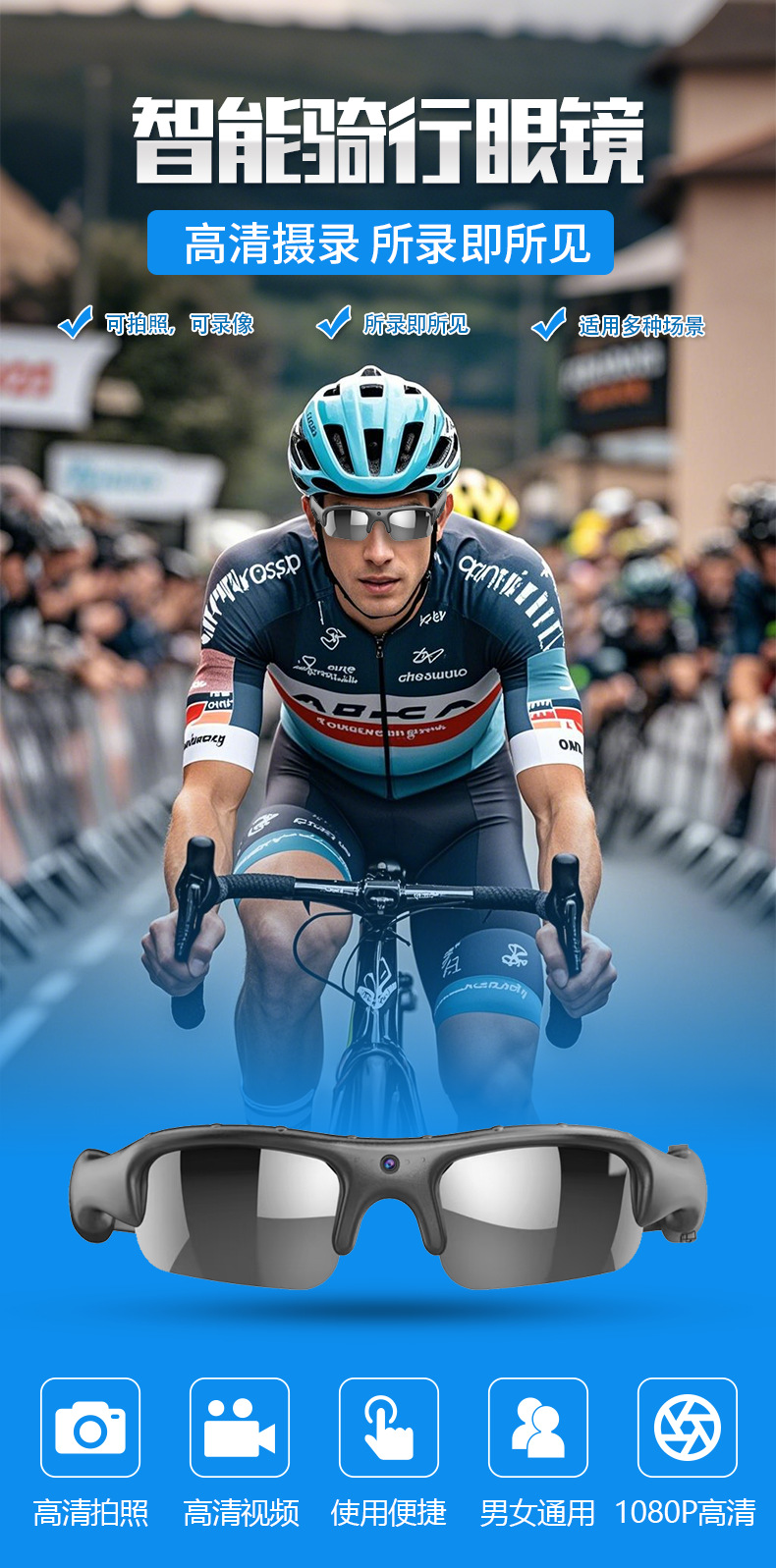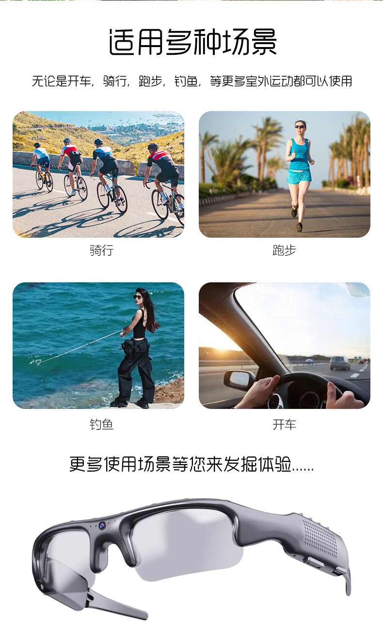 YJ01智能骑行眼镜运动录像可通话听音乐骑行拍摄蓝牙耳机智能眼镜