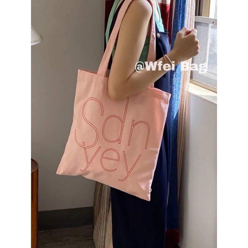 高級感の小さい大衆のピンクのアルファベットのキャンバスバッグの女性の大容量のキャンバスバッグのシングル肩の授業の学生のレジャーの手提げ袋