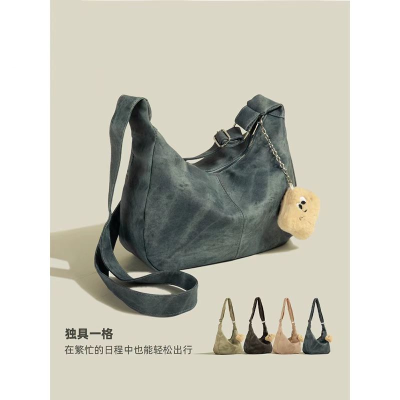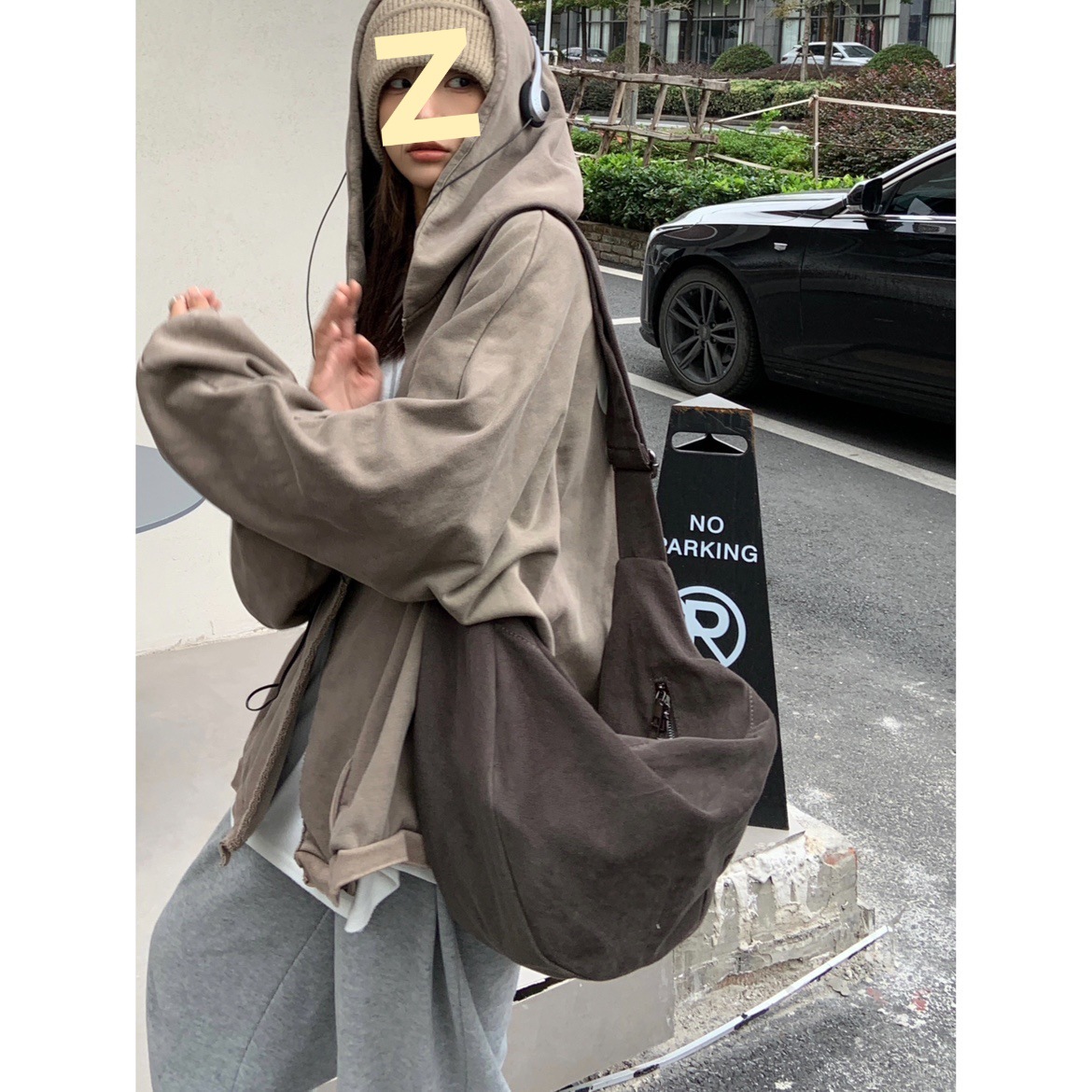ニッチなコーヒー色の怠惰な女性の斜め風レトロバッグコーヒーキャンバス新2025バッグシングルショルダー餃子メッセンジャー染めリング