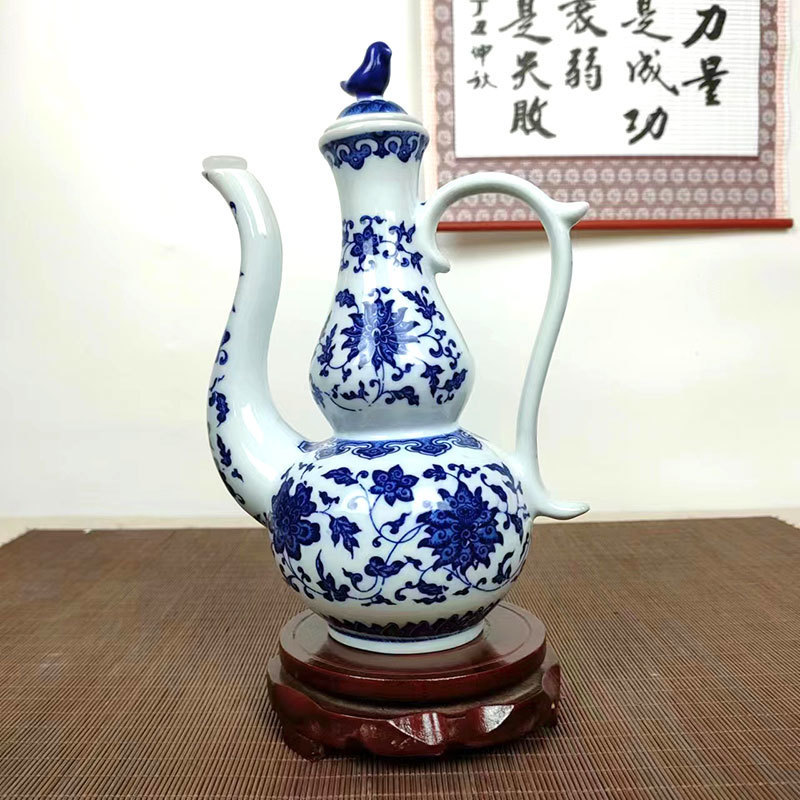 颜値高耐久性大衆金景徳鎮青花陶磁器ひょうたん密封白酒空瓶半斤家庭用梅