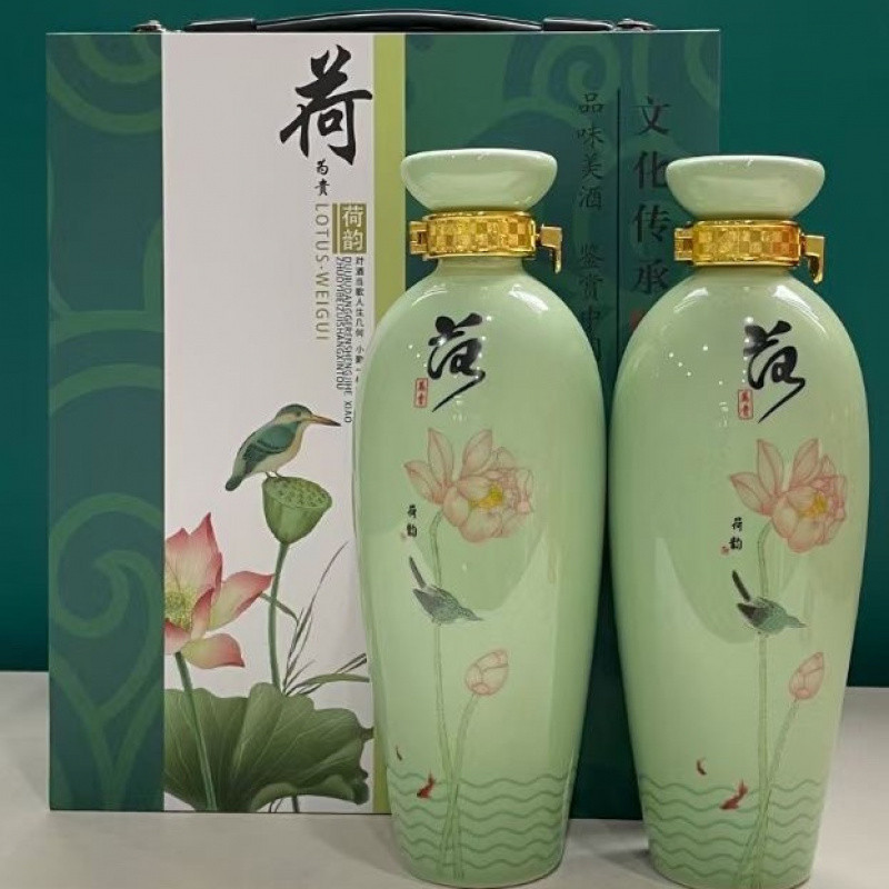 景徳鎮の陶磁器の空の酒の瓶の1斤の青磁の密封の泡の酒の祭壇の家庭の酒の壺の散白酒はハスの花の小さい酒の缶を備えます。