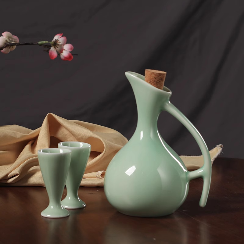 優雅なデザインの陶磁器の青磁の半斤は白酒の壺の酒を詰めて酒を分けます。
