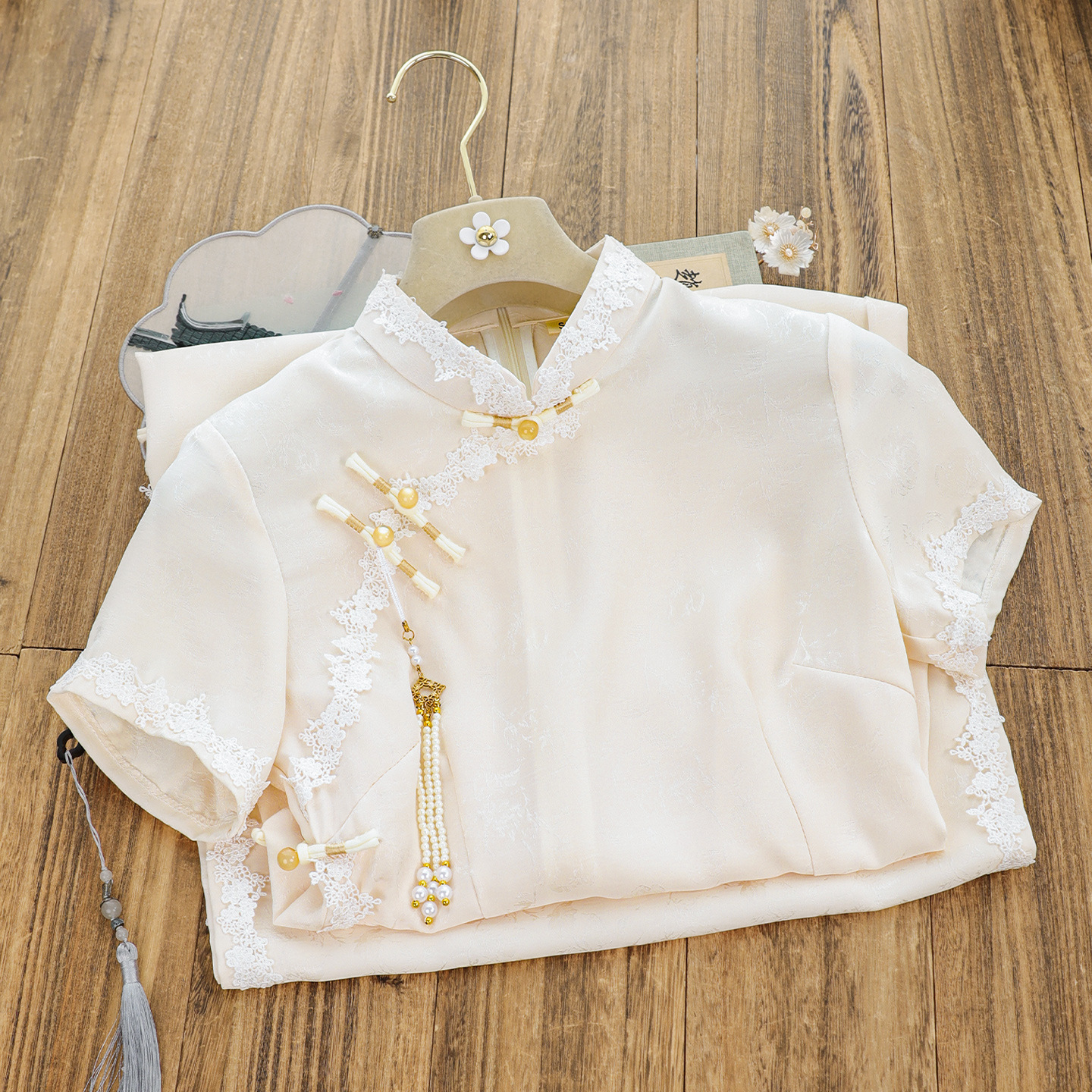 Qiaoniangyu オフホワイトレトロ新中国風チャイナドレス女性のための 2025 夏の新しいスタイル毎日着用できる気質改良された若いスタイル