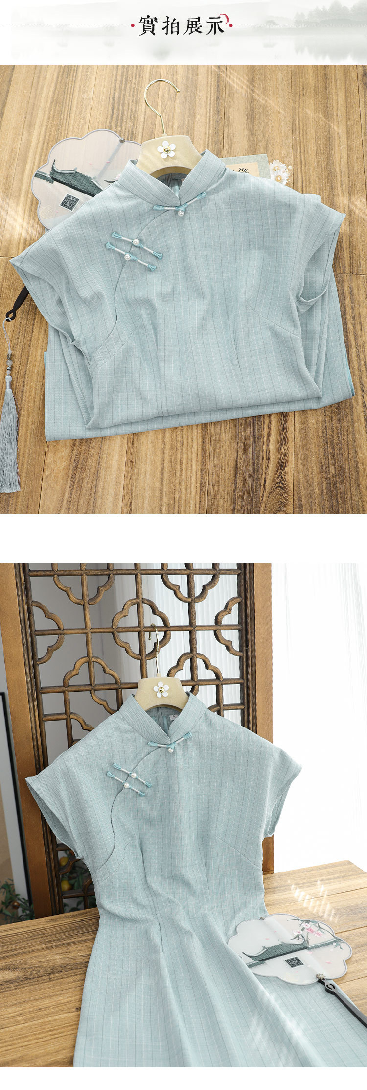 美しい娘の魚の緑色の復古の新しい中国式のストライプのチャイナドレスの女性の2025春夏の新型の日常は改良の若いモデルを着ることができます。