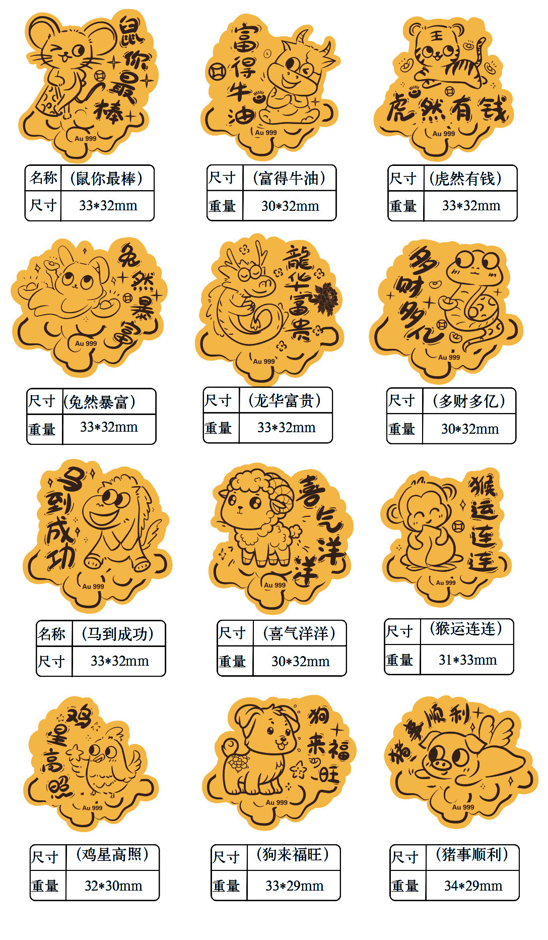 黄金足金999手机贴纸十二生肖属相马狗猴羊鼠龙活动直播引流礼品