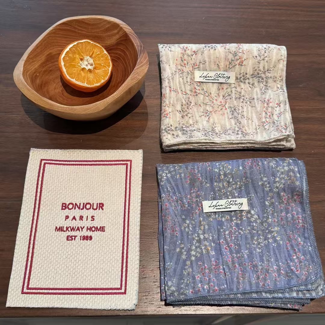 2025日系亜麻小方巾春夏首保護両面三角巾新通気文芸小襟巾ヘアバンド女