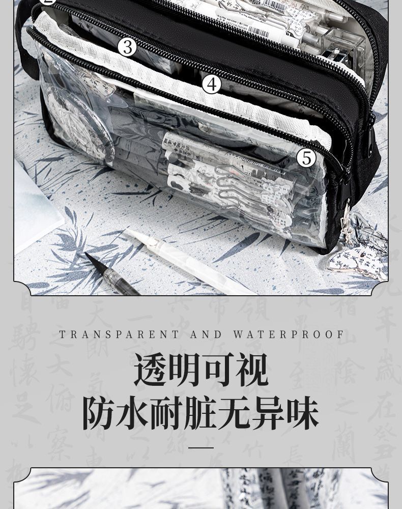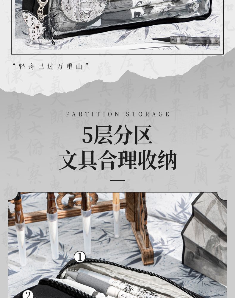 女の子向けの水墨画風筆箱、男の子向けの新しい文具箱、小学生向けの高価値筆箱。