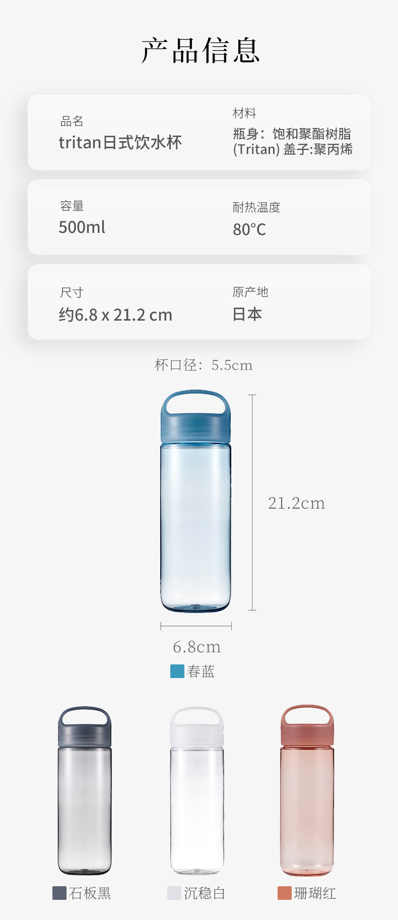 MARNA水杯tritan日本式水飲みカップシンプル屋外携帯随行プラスチック水筒