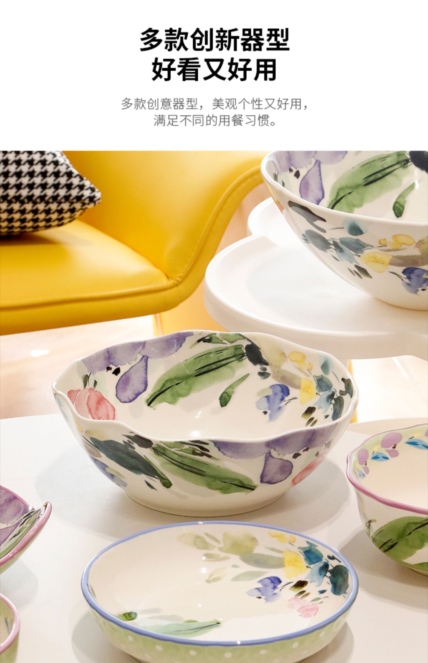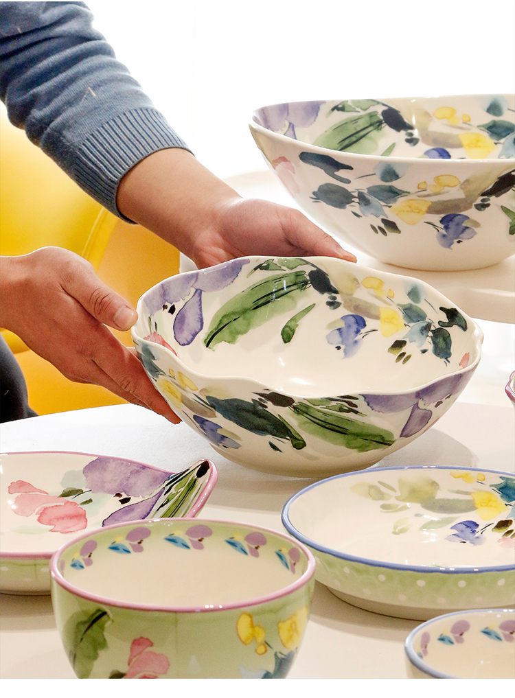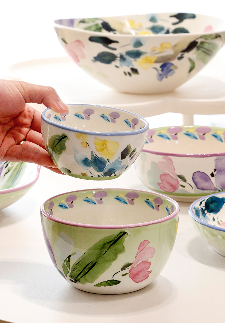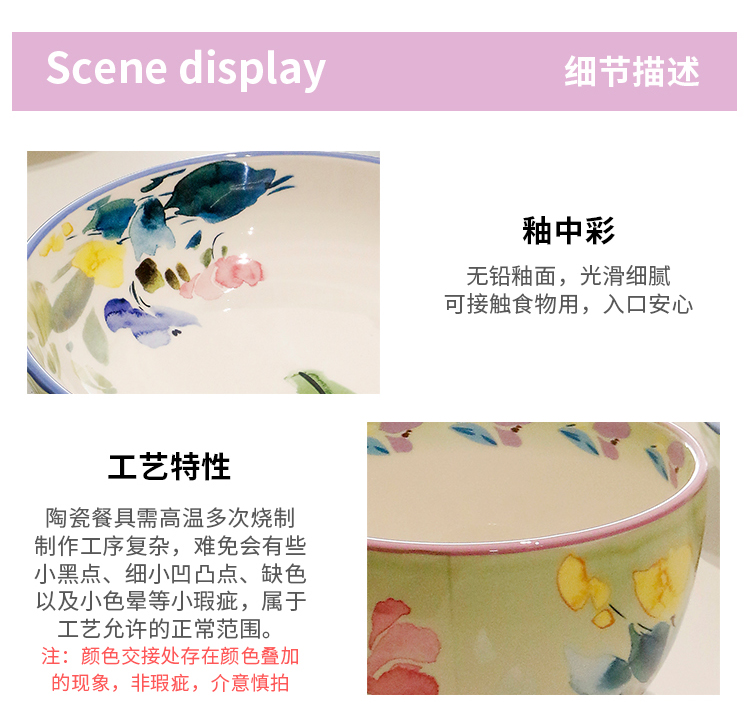 小さな新鮮なセラミックヌードルボウルクリエイティブ家庭用大型スープボウルフルーツサラダボウル釉薬色のライスボウルの組み合わせ