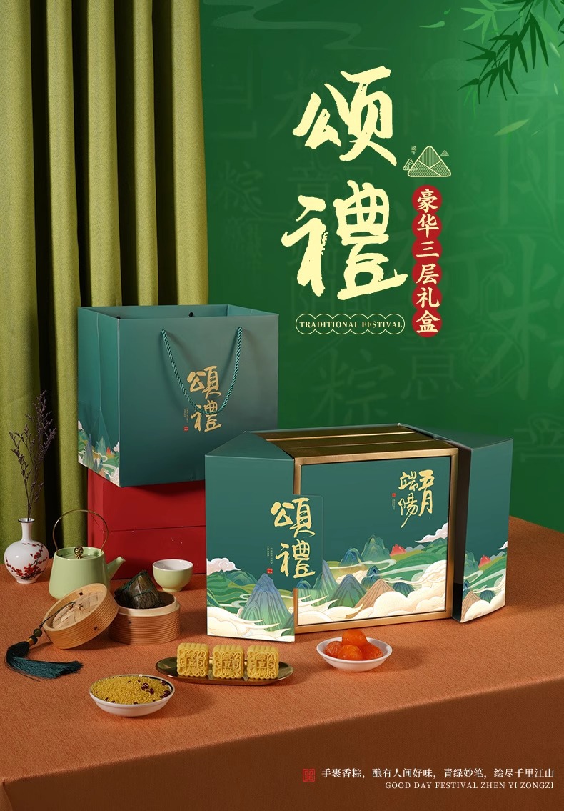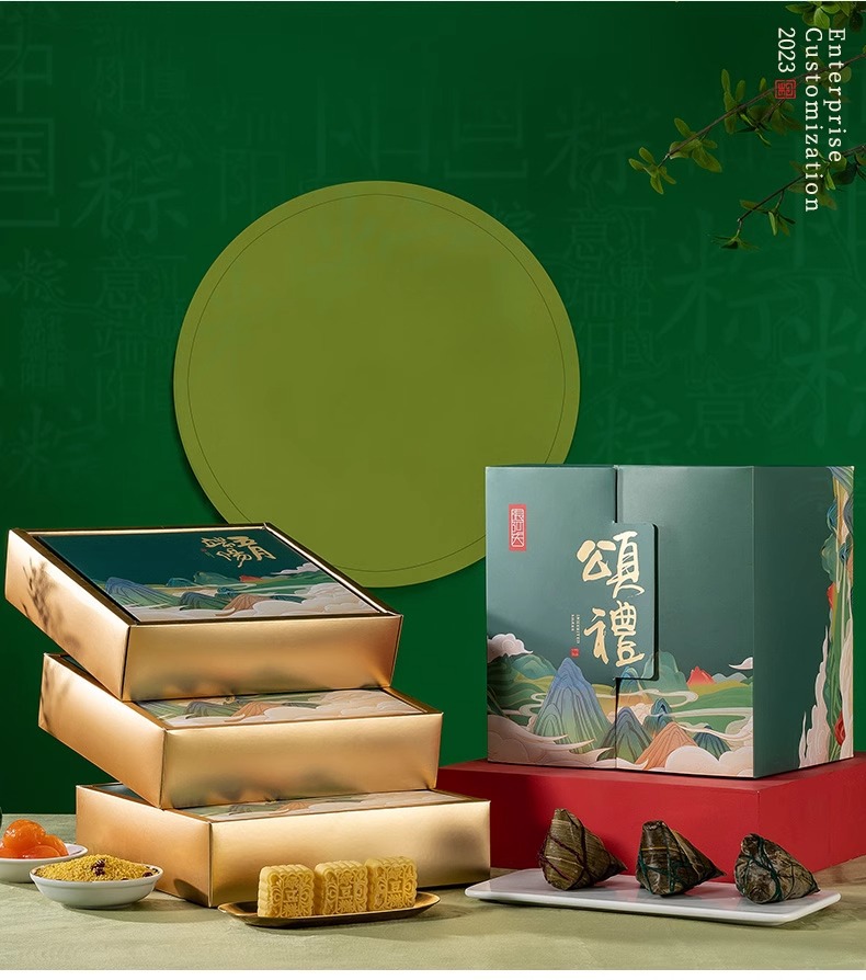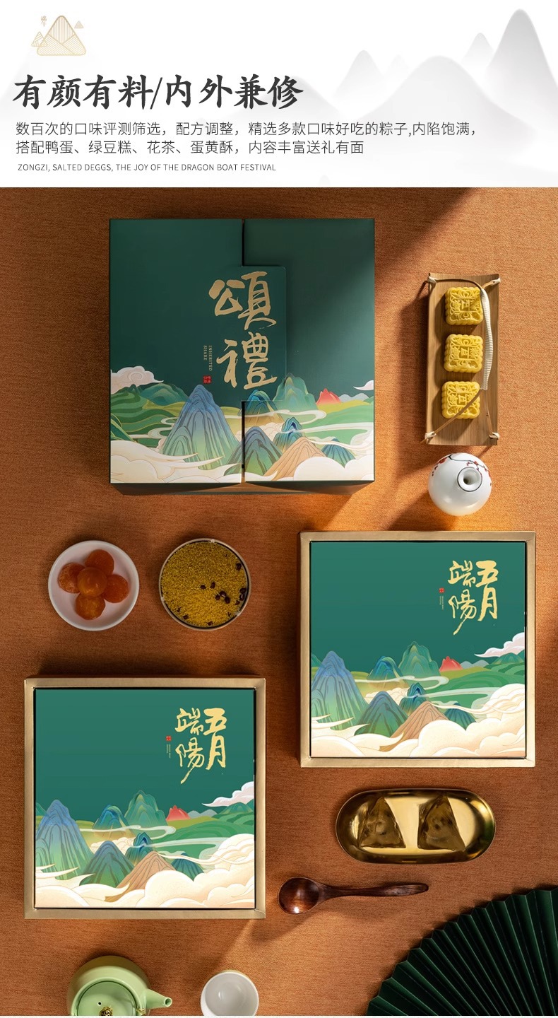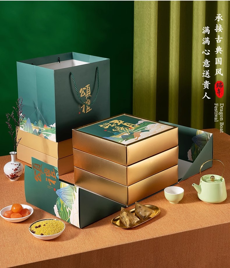 伝統的な古代スタイルのポータブル団子ギフトボックス端午節ギフト会社グループ購入従業員福利厚生印刷可能なロゴグリーティングカード