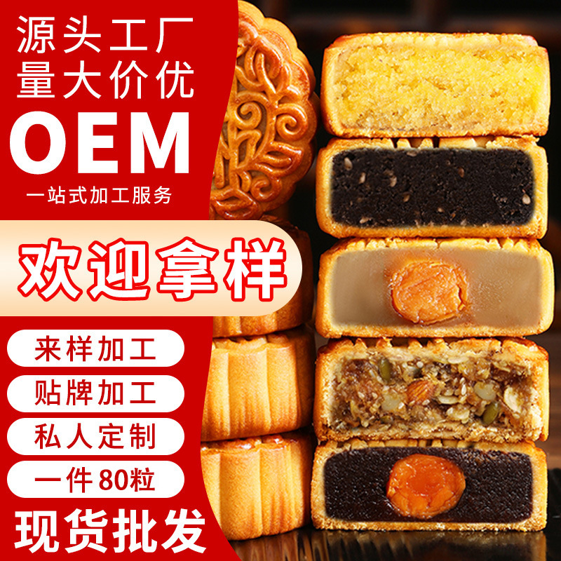 広東風マルチフレーバー月餅、中秋節餡、蓮蓉、ダブル卵黄、ココナッツ月餅、伝統的な中華菓子、卸売