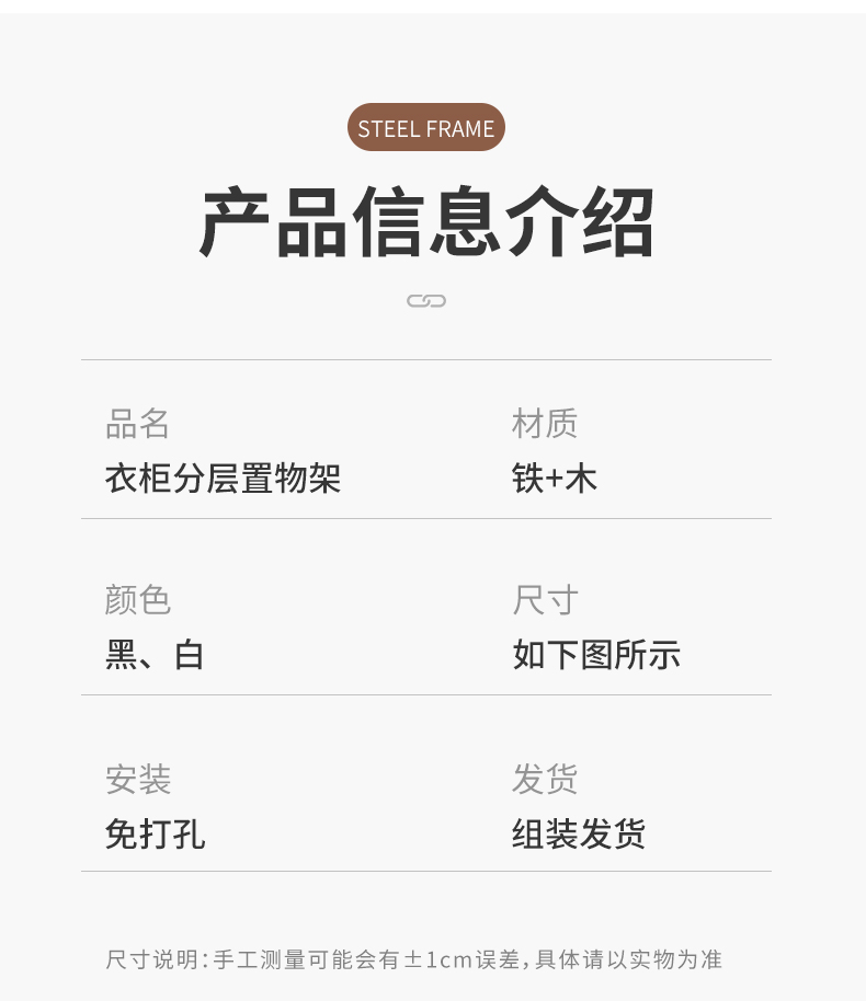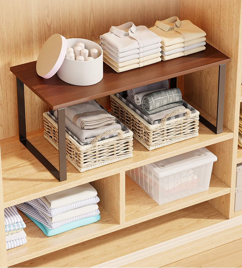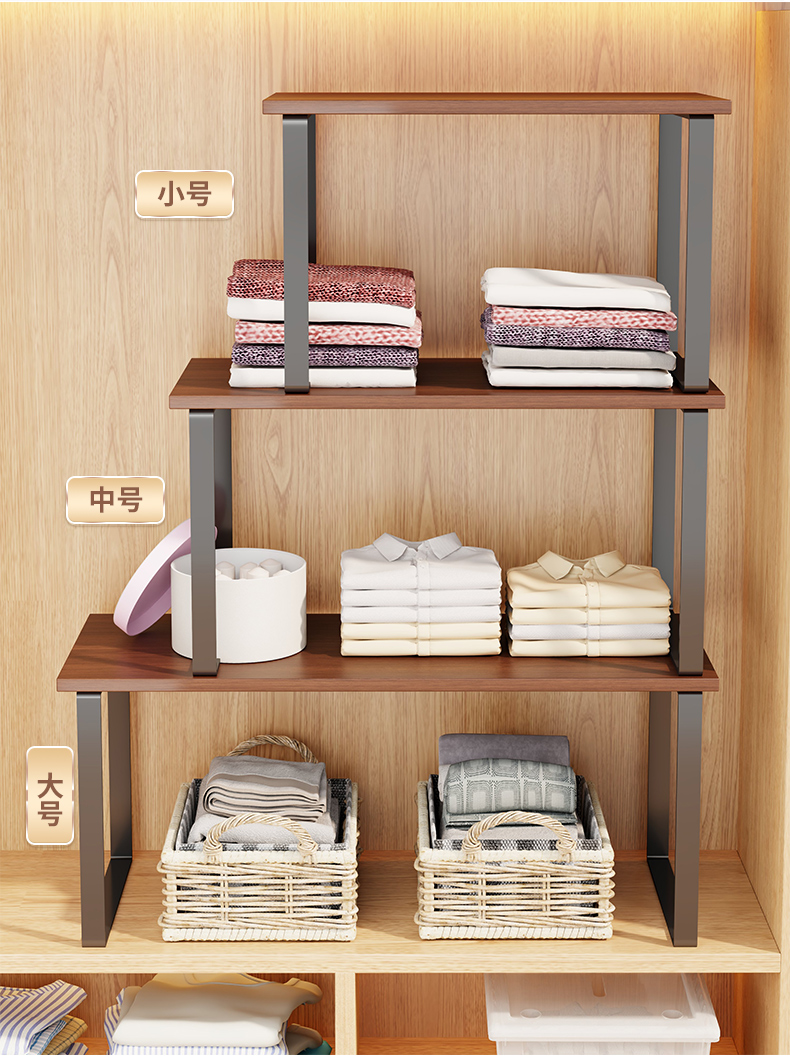 ワードローブの階層型収納ラック、ワードローブのキャビネットコンパートメント収納ラック、インナーキャビネットのワードローブのパンチフリーシェルフディバイダー