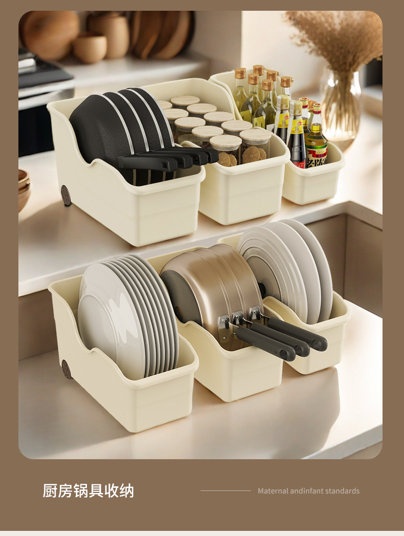 キッチンポット収納ボックスオーガナイザーポットカバー調味料プーリー付きシンクキャビネット収納多機能収納ラック