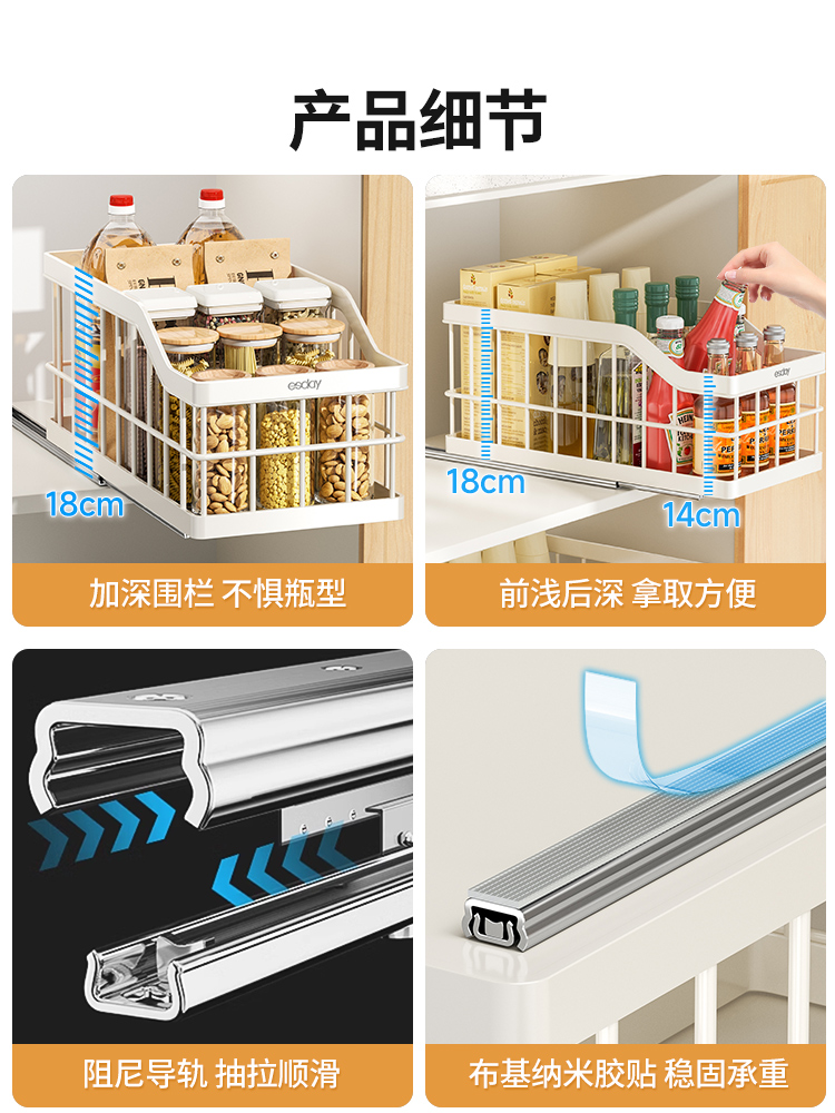 ✅厨房置物架橱柜拉篮柜内窄缝抽拉调料架夹缝收纳下水槽抽屉储物