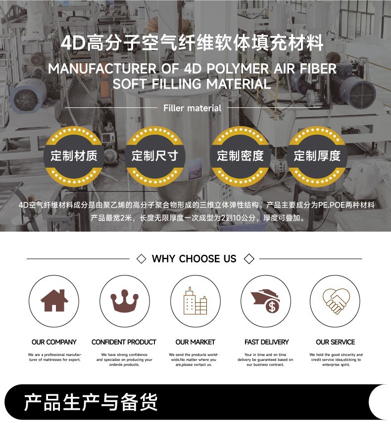 源工場poe空気繊維クッションマットレス4d高分子内芯充填材通気性水洗い長い座り