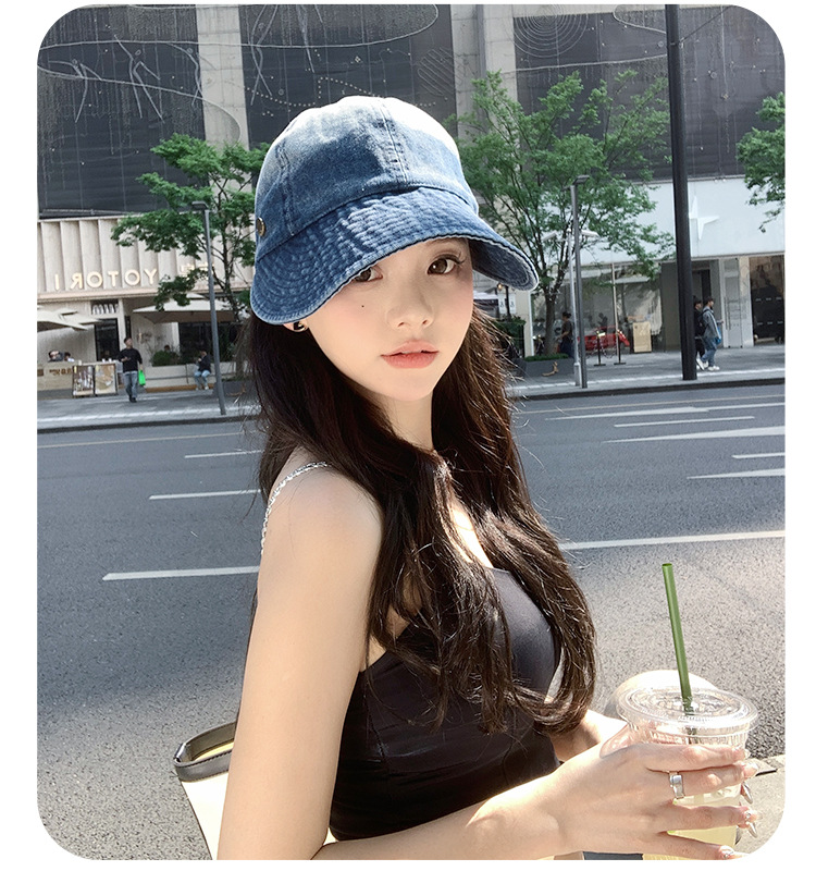 デニムフィッシャーマンハット女性用夏用大きなつば日焼け止めZhao Lusiと同じスタイルのアヒルの舌抗UV日よけ帽子