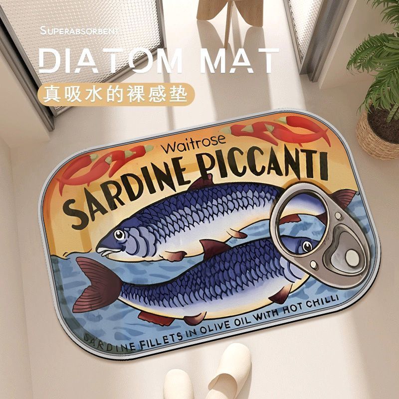 跨境TEMU代发北欧风鱼罐头地垫创意个性浴室吸水脚垫玄关入户门垫