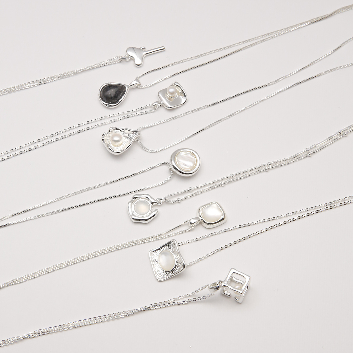 軽くて豪華な大衆は白い瑪瑙の天然の淡水の真珠の貝殻の愛の銅を設計して925銀のネックレスの女性の夏をめっきします。
