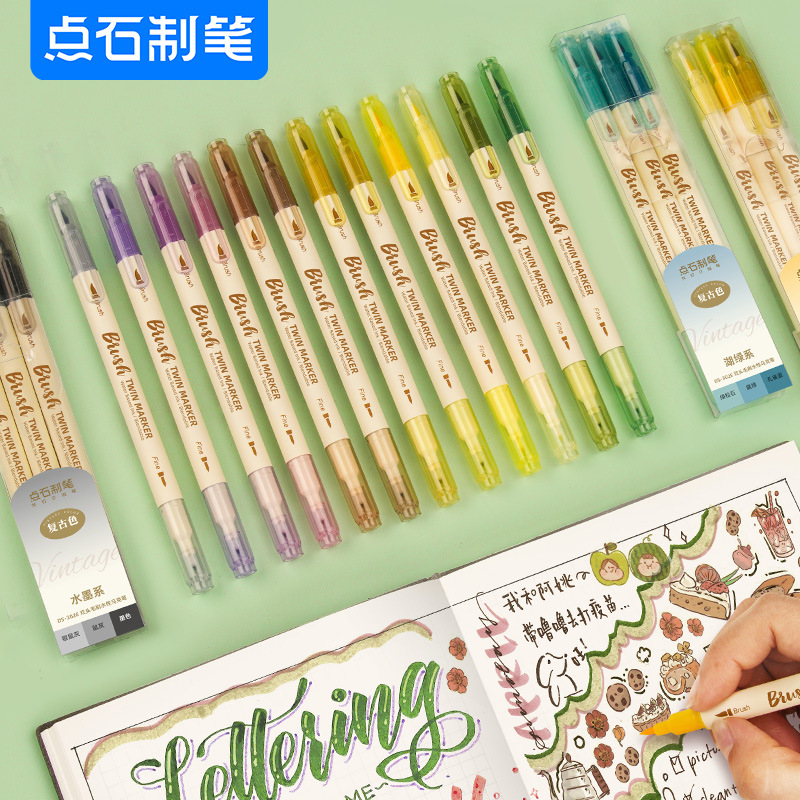 点石双頭ソフトヘッドペンカラー双頭線ペンセット事務用品卸売美術絵画メーカー302E