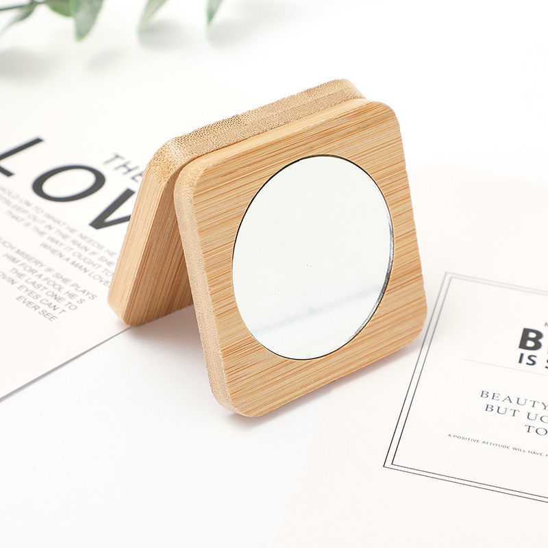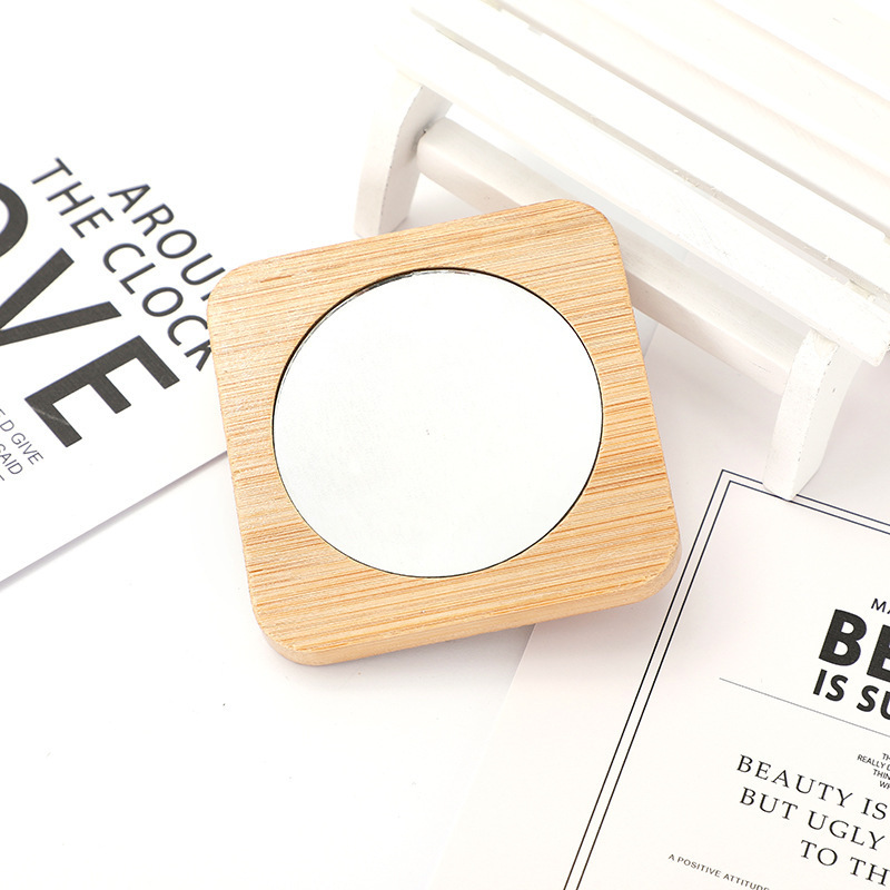 国境を越えた爆金美化粧携帯化粧鏡竹製鏡携帯鏡ミニ円形彫刻スポット卸売り