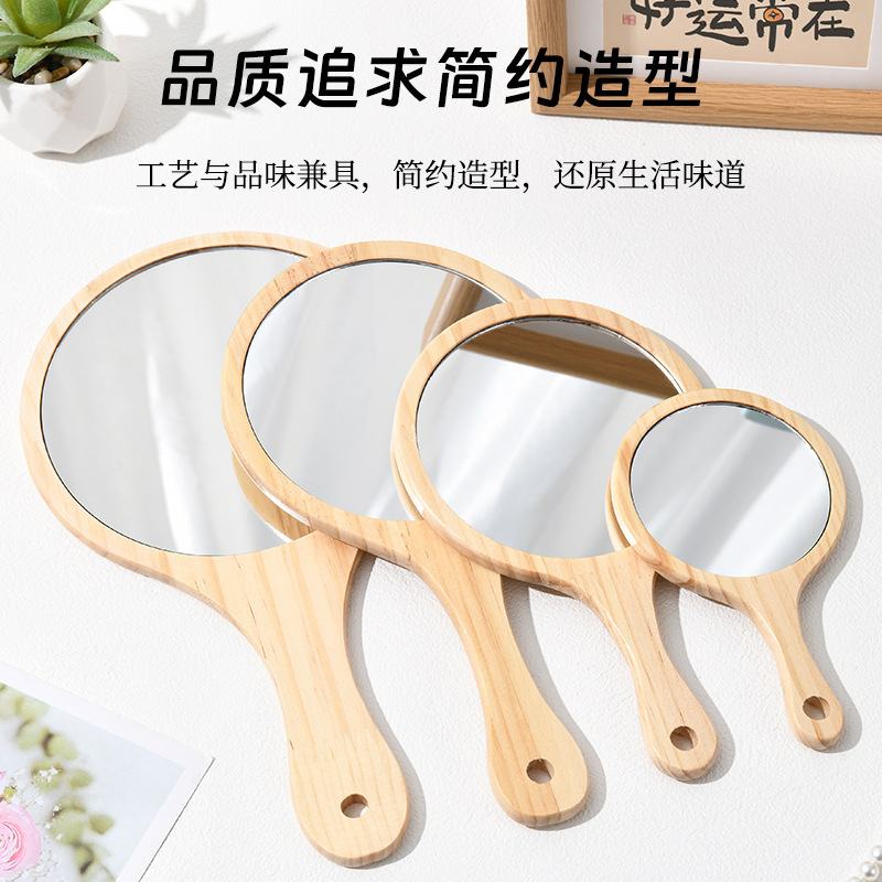 化粧鏡ハンドルミラーポータブルクリエイティブ化粧鏡ハンドヘルドミラーバニティミラー無垢材ハンドヘルドミラー美容室